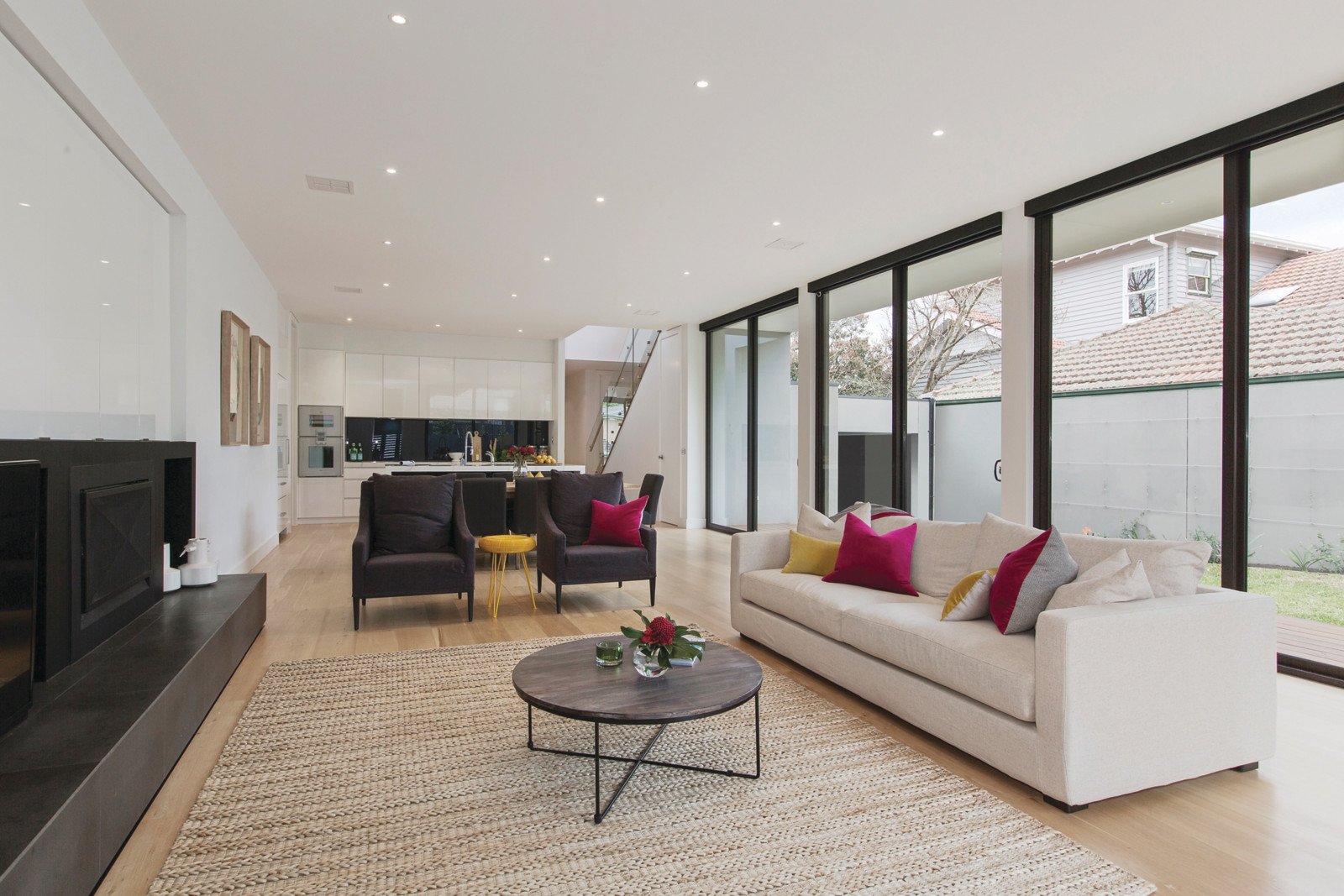 Defined by a meticulous attention to detail and state of the art style throughout, the innovative design has created a wonderful seamless flow between indoors and out through soaring full height glass sliders. American oak floors and 3 metre ceilings are introduced through the wide entrance hall leading to a sensational sitting room with marble bar. The premium Gaggenau kitchen boasting Calacatta marble benches, integrated Liebherr fridge/freezer and Miele equipped butler's pantry, a fitted study and expansive living and dining room with gas fireplace open out to a stunning deep landscaped north oriented garden with huge deck and solar heated enviroswim (chemical free) pool. A beautiful bedroom with designer en-suite and built in robe enjoys downstairs seclusion while upstairs comprises the captivating main bedroom with opulent en-suite and walk in robe, two further bedrooms with robes and desks, stylish bathroom, wide terrace and a large retreat.