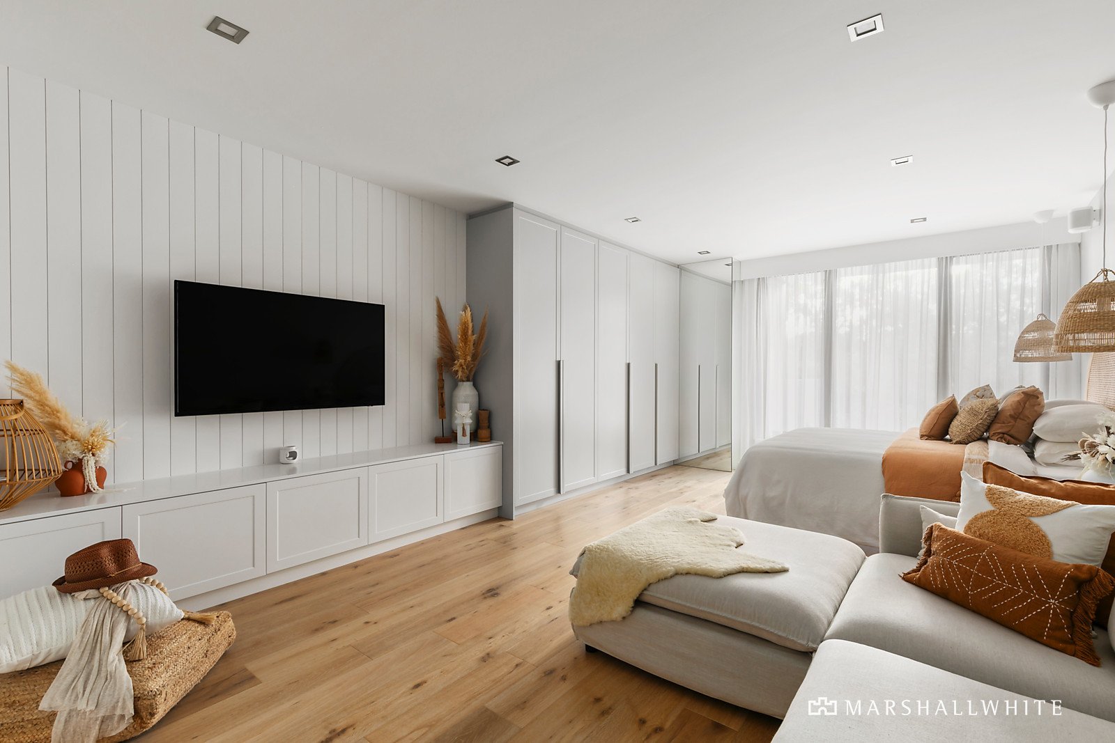 Both the master suite and the main guest bedroom are impressively sized with fully-tiled five-star ensuites, customised walk-in robes or built-in robes and balcony access for the master, while the remaining bedrooms also enjoy balcony access - one with walk-in robes and the other with built-in robes.