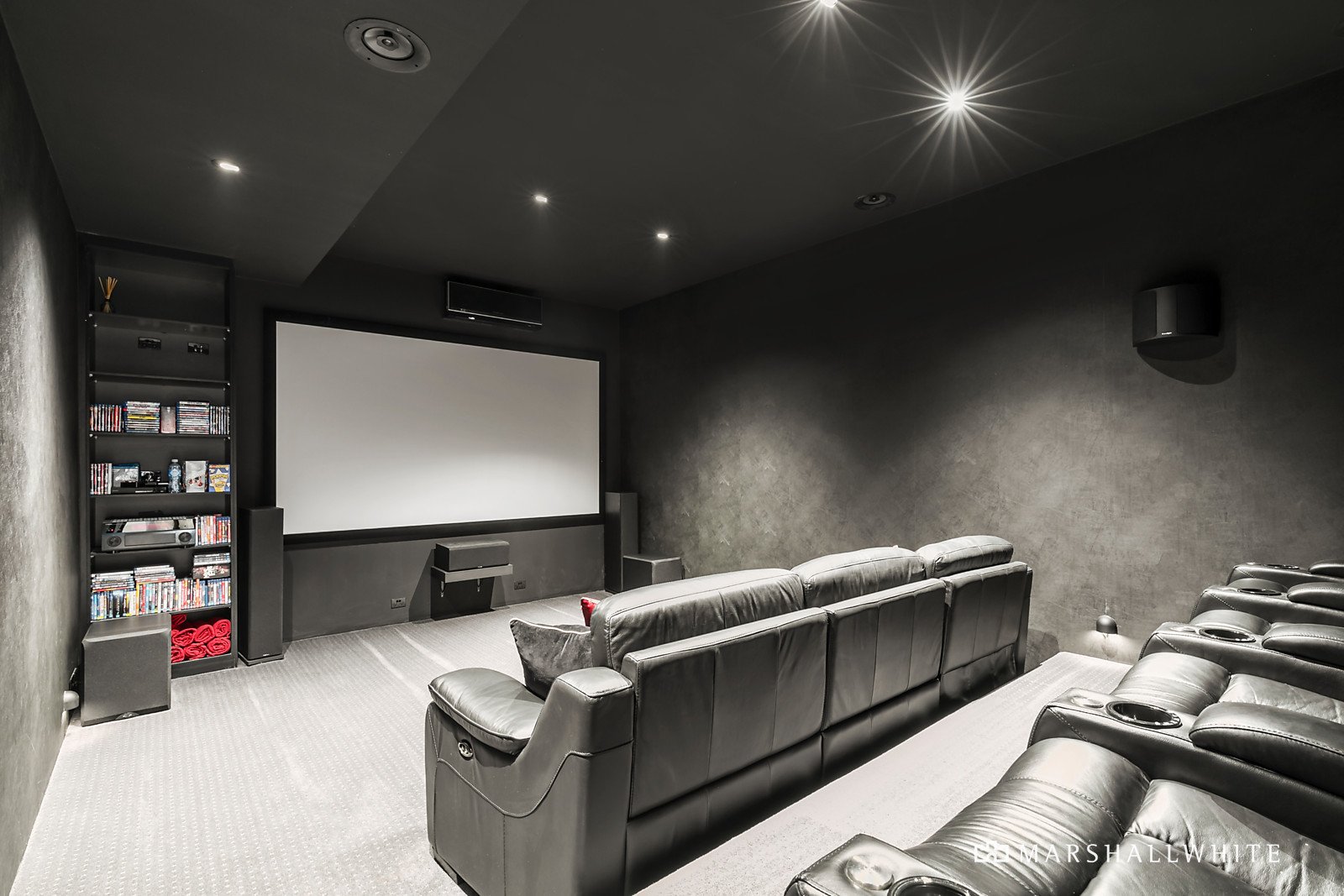 Meanwhile, under eye-catching cathedral ceilings with a built-in bar of American Oak and an ambient fireplace set in granite, a more formal lounge and dining area is a spectacularly large space that reinforces the home's entertainers spirit. Further, a home gymnasium and a fully sound-proofed seven-seat home theatre ensure that the home caters to private relaxation as well as vibrant entertaining.