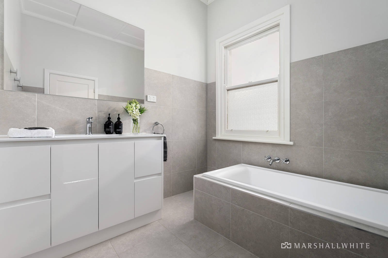 The rich period character begins with the tessellated verandah and continues inside where ornate ceilings and beautiful leadlight windows are on display in the wide entrance hall, elegant formal dining room and the gracious sitting room with a fireplace and bay window. An inviting family room is adjacent to a well-equipped kitchen and sunroom/retreat opening to the deep private north-facing leafy garden complete with a huge artificial turf sports court. The generous main bedroom with robes, shower, toilet and study is accompanied by two additional bedrooms, a stylish bathroom and laundry with 3rd shower and 2nd toilet.