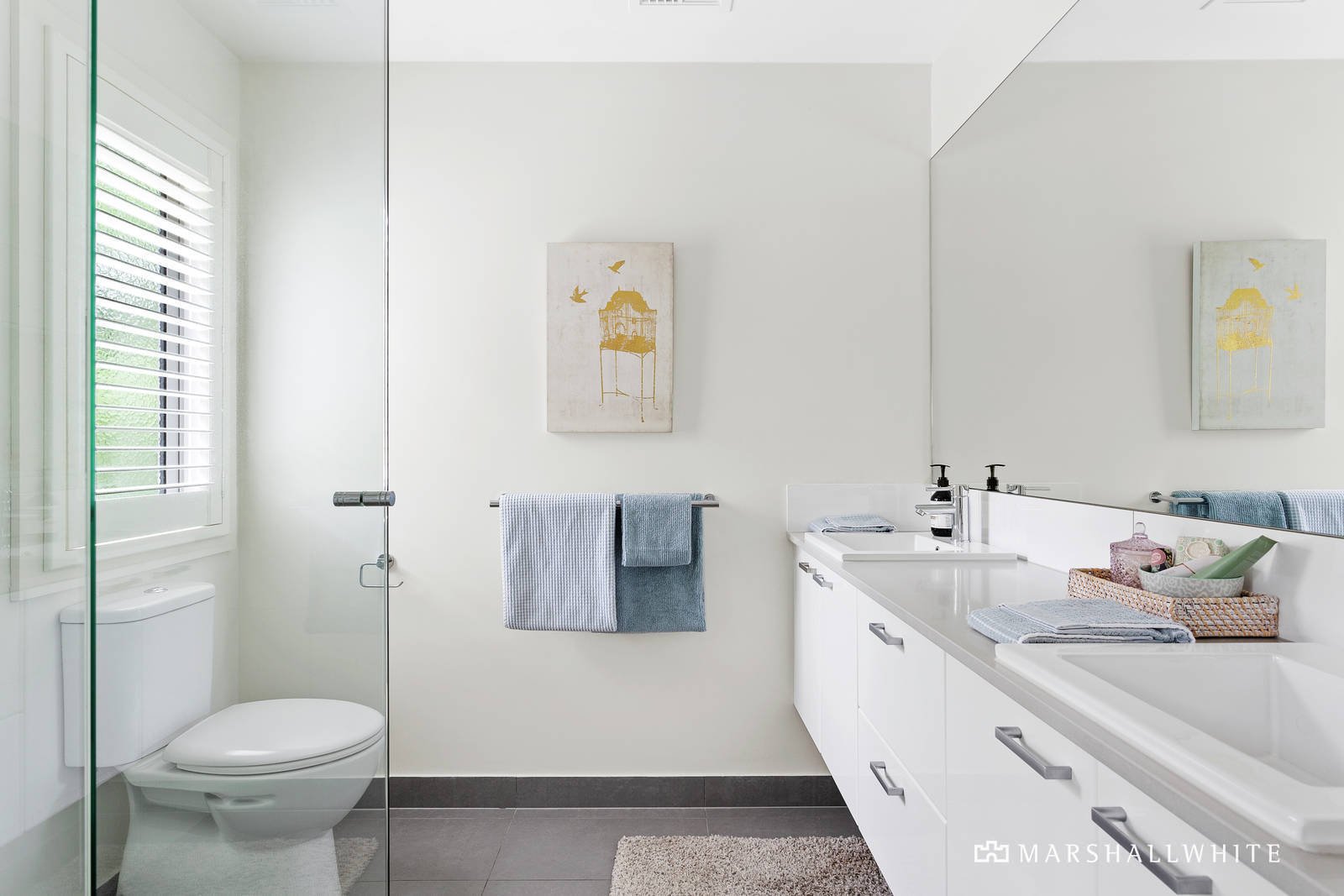 The upper level continues the luxury feel with two bedrooms with built in robes, which share a bathroom with separate bath and shower, stone bench tops and storage. The master bedroom, a perfect retreat, with its treetop position is complete with double vanity in the ensuite and walk in robe.