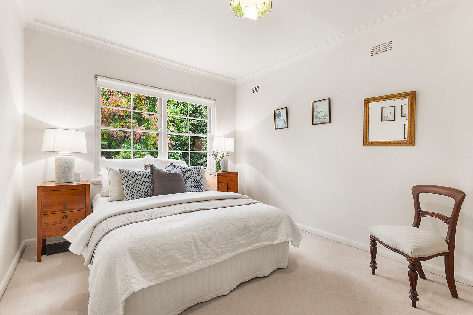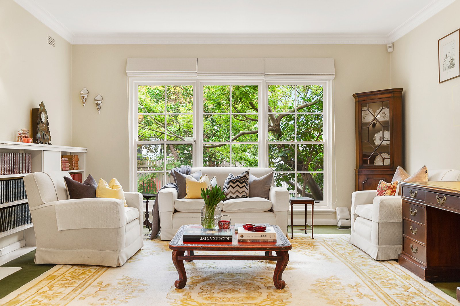 Generous proportions define the welcoming entrance hall, gracious sitting room with an open fire, living room and light-filled dining room opening to the deep leafy private north garden. The separate gourmet kitchen has been superbly refurbished with stone benches and stainless-steel appliances. Family accommodation upstairs comprises an expansive main bedroom with built in robes, two additional bedrooms with robes and a stylish bathroom with separate toilet.