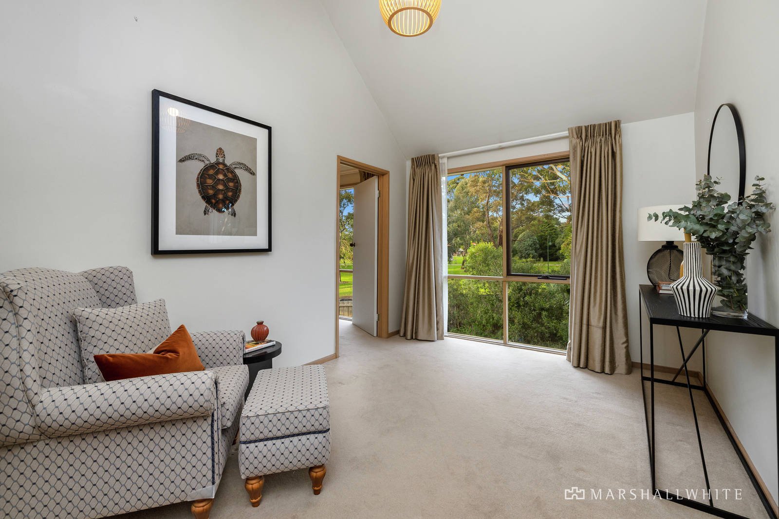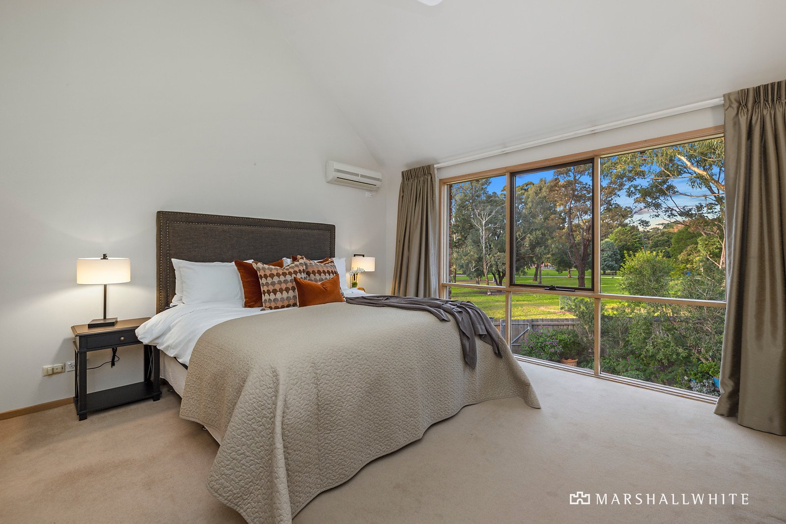 Cathedral ceilings and huge windows introduce generous ground floor rooms including the formal living and dining room, kitchen and meals area, and a separate family room. A study or further bedroom provides additional flexibility, while two ground floor bedrooms are complemented by the large main bedroom and parents' retreat on the first floor, both featuring uninterrupted views of the park.