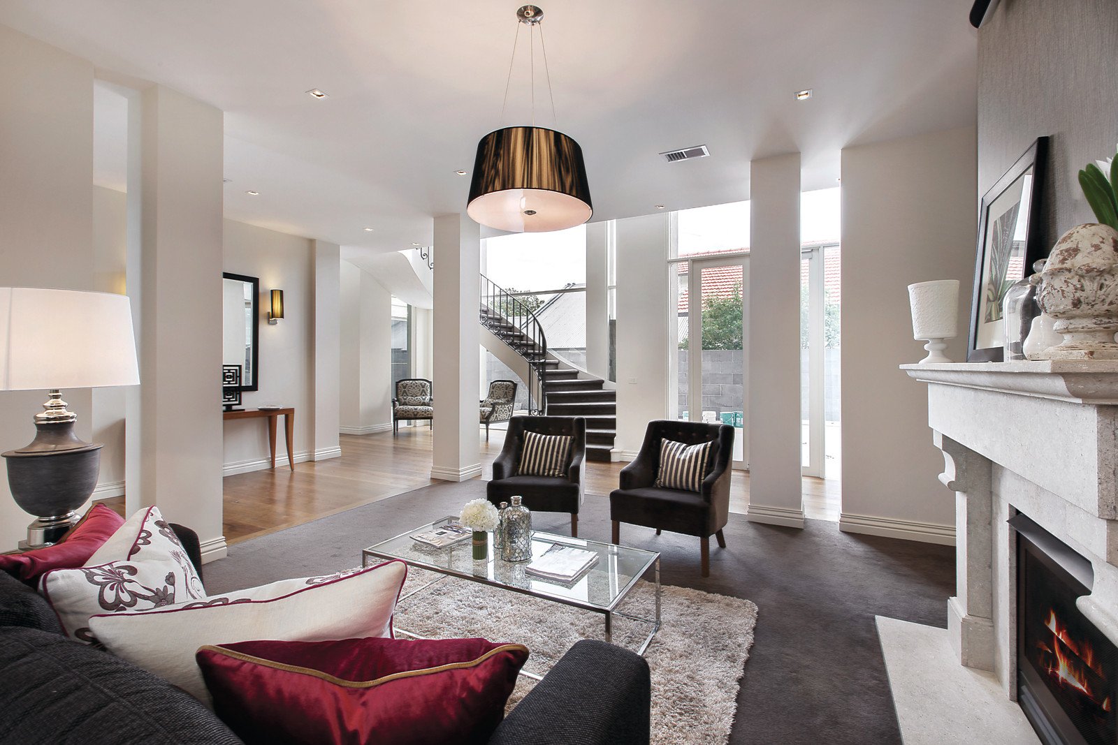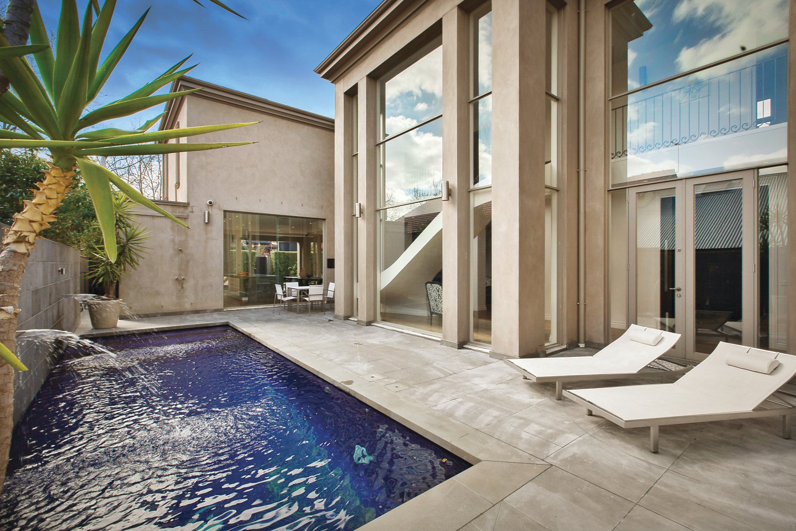 Introduced by European Oak floorboards the interior comprises a wide entrance hall with formal sitting room, home theatre, fully-fitted study, pristine downstairs bathroom, generous informal living area incorporating a state-of-the-art kitchen, with marble bench tops, island bench and Miele appliances plus a butler's pantry and laundry. Flowing to a north-facing alfresco area and covered dining with gas barbeque within a walled garden. Whilst a curved staircase leads to four upstairs bedrooms, huge main with dual WIRs & sparkling ensuite, two family bathrooms all with ensuite access. Other features include video intercom, alarm, ducted heating, cooling & vacuum, gasFPs, basement gymnasium and garaging for up to 6 cars plus storage with remote access from Simpson Street.