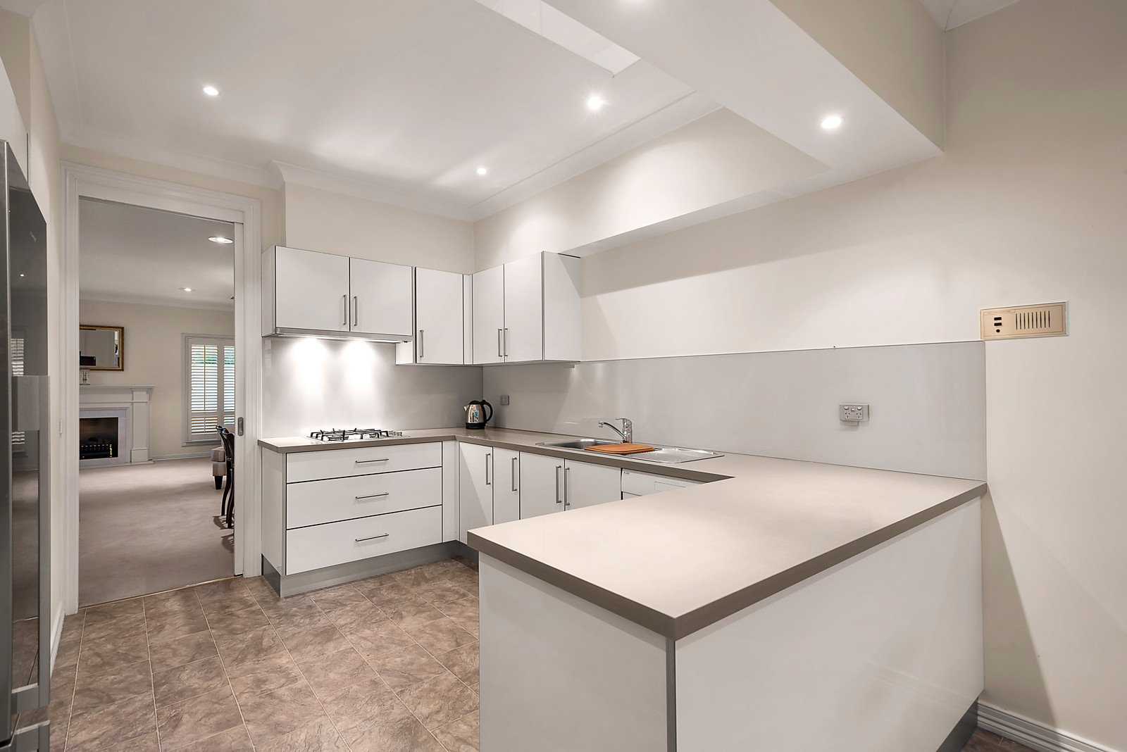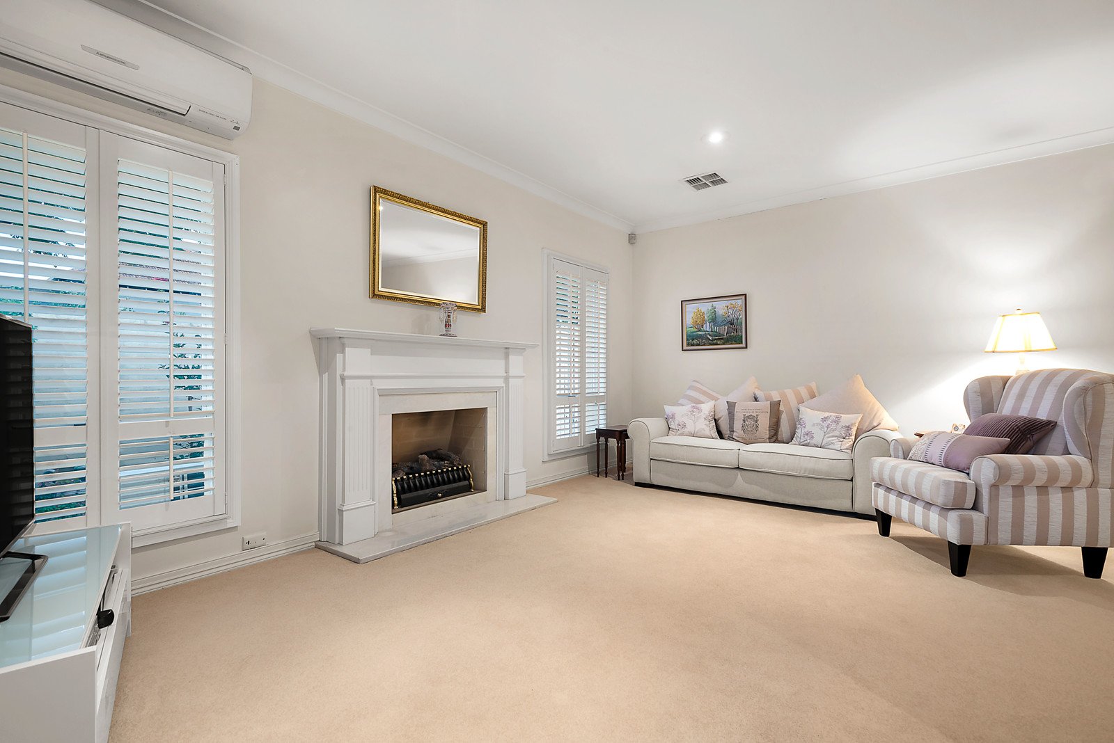 Northern light streams through the impressively proportioned sitting room warmed by a gas log fireplace and spacious formal dining area. The stylish gourmet kitchen boasting stone benches, ample storage and a light-filled casual dining area opens out to a gorgeous private courtyard surrounded by a lush high hedge. The generous main bedroom with en-suite and built in robe is accompanied by a second double bedroom with built in robe and bathroom.