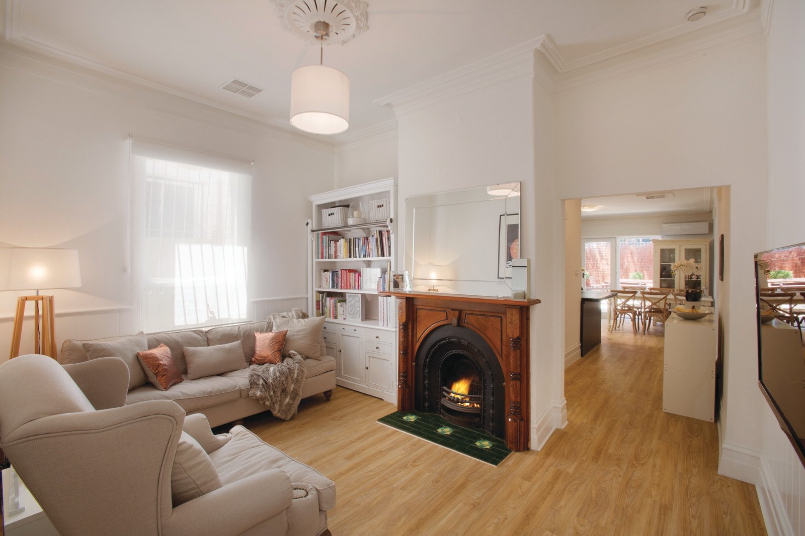The perennial appeal of this single fronted Victorian is magnified by the success with which impressive modern spaces have been introduced to its engaging floor-plan - the outcome is an inner city home offering instant enjoyment in a location that puts Edwards Park at the end of the street. Proximity to Lagoon Reserve, Bay Street and Gasworks Arts Park adds to the lifestyle allure of the address that complements ideal dimensions including two double bedrooms, both with built in robes. A central living room in which an open fire place enhances the sense of style leads to a separate space for dining accompanied by an open plan kitchen with stainless steel appliances. The sky lit bathroom's updated proportions confirm the comfort and character of a home featuring central gas heating and reverse cycle cooling and, outside, a courtyard of landscaped privacy. Perfect.