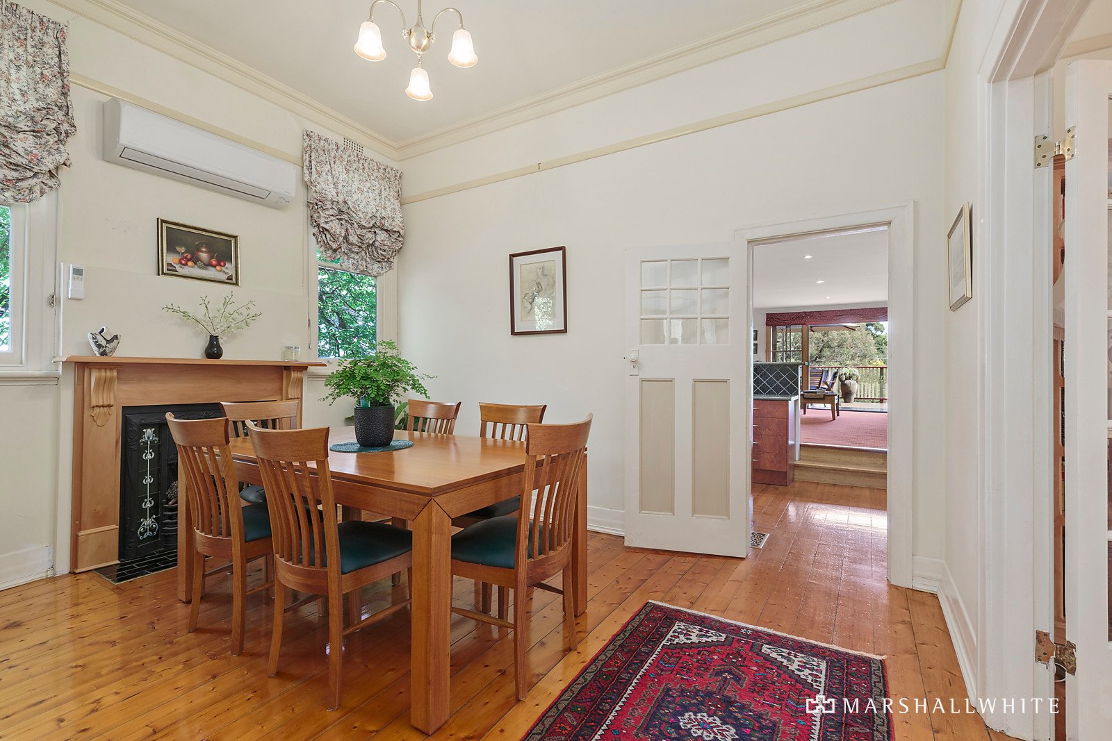 The original charm of the exterior is matched inside by Baltic pine floors, leadlight windows and high ceilings in the L-shaped entrance hall, elegant sitting room with a fireplace, home office and the inviting formal dining room with fireplace. The well-appointed modern kitchen with Bosch and Neff appliances and the expansive family room open to a large northwest facing entertaining deck overlooking the picturesque private garden with a covered terrace and water feature. Two double bedrooms with built in robes and a pristine bathroom are matched downstairs by two additional bedrooms with robes and a bathroom.
