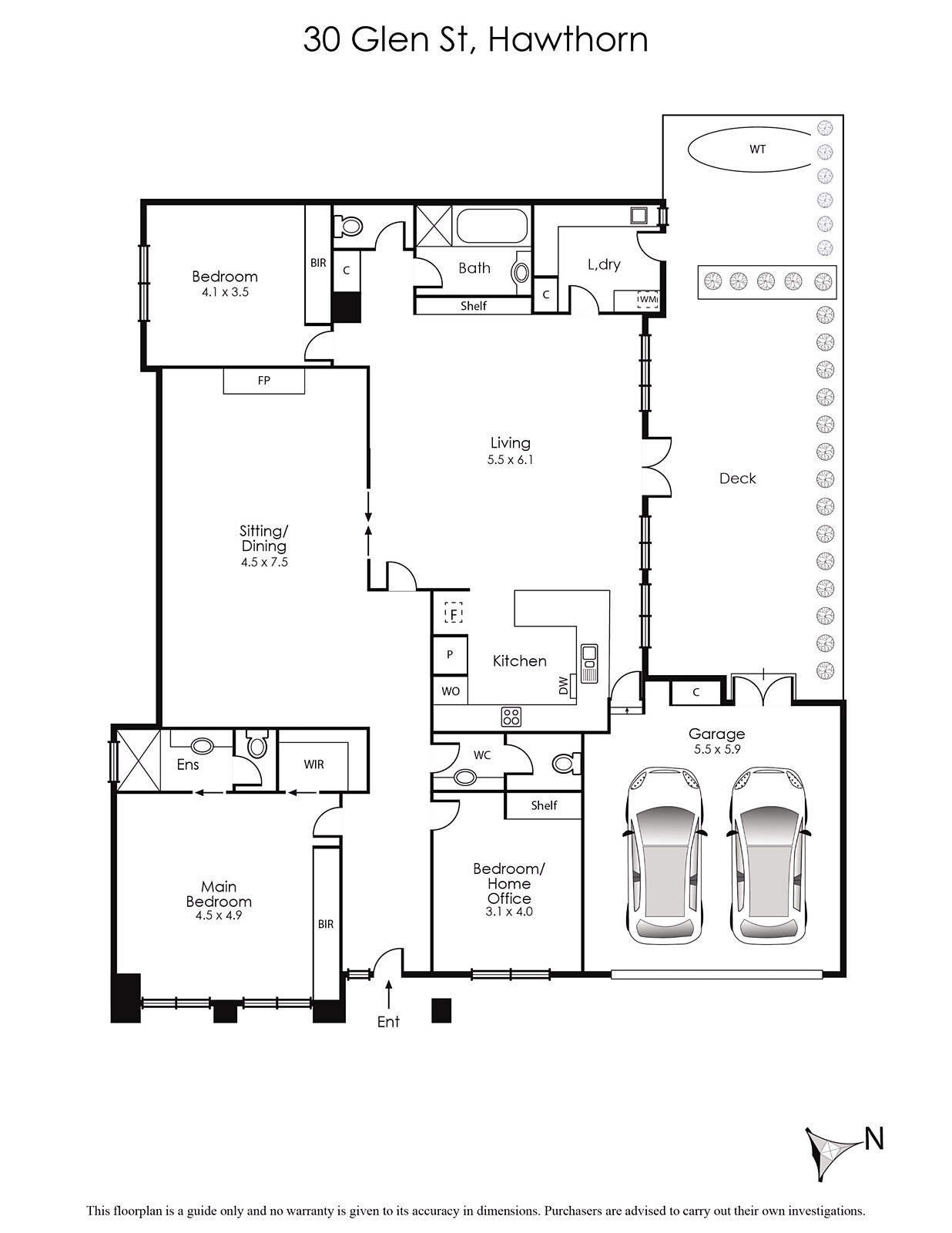 Framed by a beautifully manicured landscaped garden, rich tallowwood parquetry floors flow through the entrance hall to a palatial formal sitting and dining room with a gas log fire where 3m ceilings accentuate the scale. Northern light streams through the spacious open plan living and dining area served by a gourmet kitchen boasting Miele appliances and stone benches. French doors open out to a private north-facing decked courtyard shaded by a full width remote sun awning. The generous main bedroom with walk in/built in robes and a designer en suite is matched by a second double bedroom with robes, a third bedroom or home office and stylish bathroom with separate toilet.