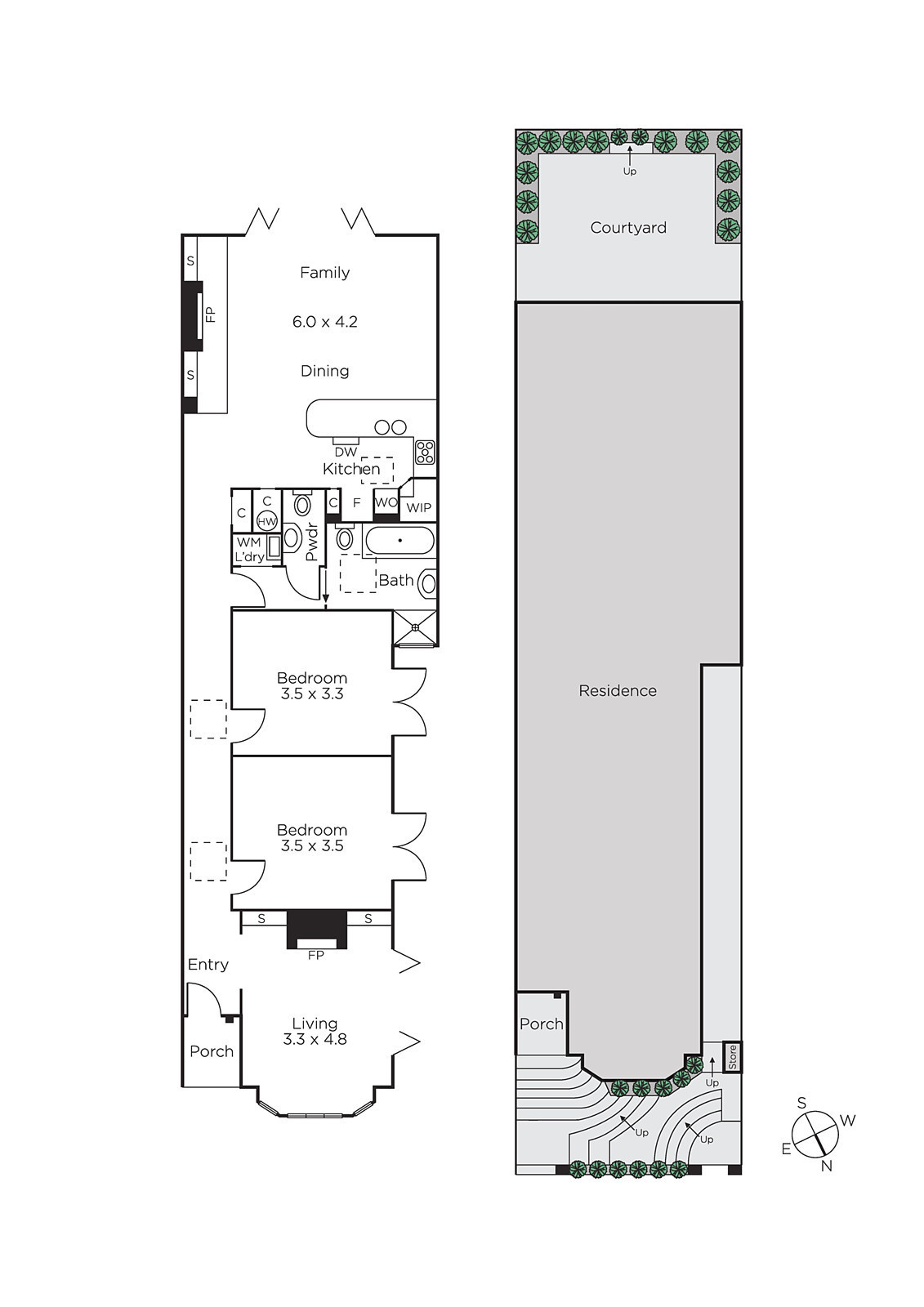 Soaring 3.2m ceilings add to the sense of space while timber floors add rich character to the entrance hall and generous light-filled sitting room or 3rd bedroom with a stone open fire and bi-fold doors to a west-facing side terrace. Two gorgeous double bedrooms with French doors opening to the side garden are complemented by a stylish fully tiled bathroom and additional powder-room. The timber floors continue through the expansive open plan living and dining room with a stone fireplace and gourmet kitchen boasting stainless steel benches and Miele appliances. Bi-fold doors open allowing a seamless flow out to the private paved courtyard, a fragrant oasis completely surrounded by Jasmine.