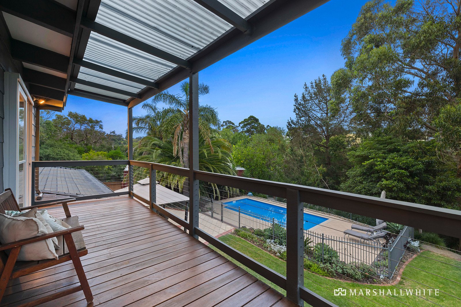Back home, take your pick of alfresco areas. A large balcony on the second storey is perched at treetop level, allowing you to try your hand at a spot of bird watching. On ground level, you can kick back on a sun lounge by the solar-heated in-ground pool and adjoining palm garden, or get your friends around for a barbecue on the extensive paved entertaining area. In need of a moment's solitude? Wander down your own private bush track to the clearing by Sweetwater Creek designed for contemplation and some well deserved 'me time'.