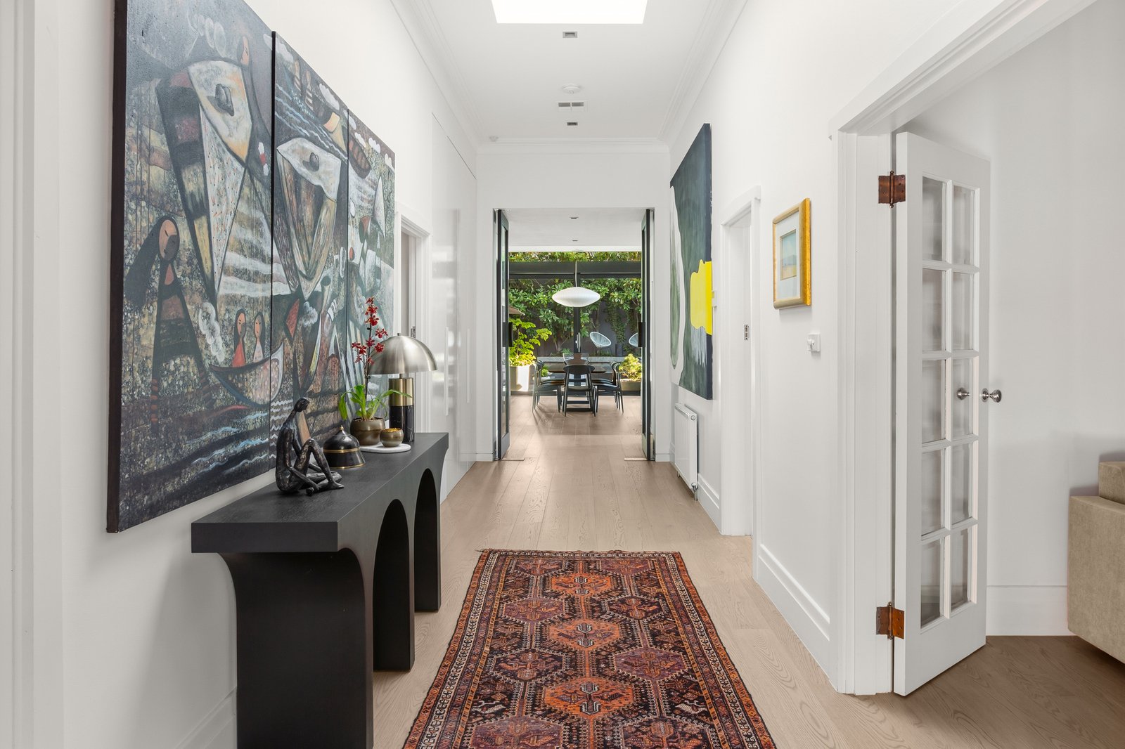 A visionary renovation curated with flawless designer flair, bespoke finishes and a sustainable mindset has resulted in this utterly captivating solid brick Edwardian residence. Unforgettable interior dimensions unfold over a flexible single level floorplan set against a breathtaking, low maintenance private rear garden and pool backdrop. Behind the imposing front fence and traditional verandah, a wide, sky-lit hallway featuring oak floors and high ceilings connects an elegant lounge - or 4th bedroom, the beautiful main bedroom with designer ensuite, freestanding bath and built in robes, two additional robed bedrooms and a stylish bathroom. Glass hallway doors open onto an architecturally striking rear addition, featuring an elevated ceiling framed by clerestory windows, which heightens the sense of space and natural light in the impressive open plan living and dining area, complete with a concealed bar and fridge. Sleek and sophisticated, the gourmet kitchen delivers culinary efficiency with its Dekton benches, 90cm Ilve oven, induction cooktop and integrated fridge/freezer. Wide glass sliders reveal a stunning landscaped oasis of privacy and tranquillity with bluestone paving, built in gas BBQ and a picturesque wet-edge solar-heated pool overlooked by a large sundeck. A more idyllic place for alfresco dining and entertaining would be hard to find. Enviably situated close to High St and Cotham Rd trams, Kew Junction and Glenferrie Rd precinct, walking distance to leading schools, Kew Recreation and pool and Victoria Park, it includes an alarm, video intercom, hydronic heating, RC/air-conditioning, plantation shutters, generous laundry, irrigation to backyard, water tank, solar panels, EV charger, auto gate to off-street parking and rear garage. Land size: 559sqm (approx)
