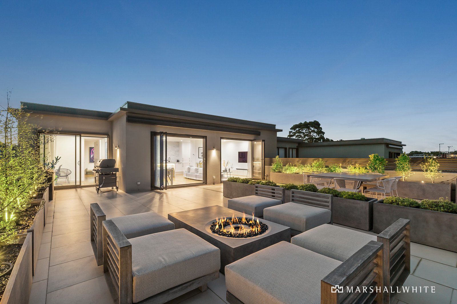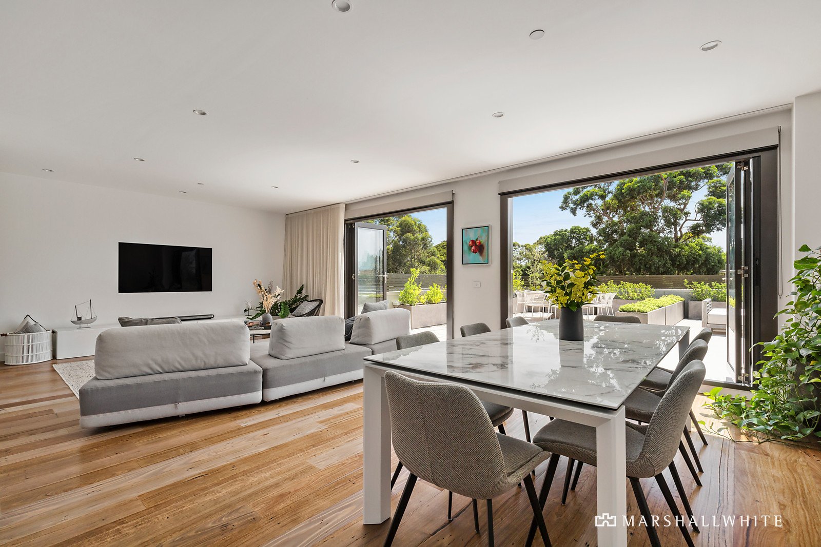 Architecturally refurbished throughout with impressive attention to detail, beautiful hardwood floors flow through the entrance hall to an expansive open plan living and dining room and stunning premium kitchen boasting Italian marble benches, a striking Elba marble feature wall and Miele/V-Zug appliances including an integrated Miele fridge/freezer. Two sets of bi-fold doors allow the living spaces to seamlessly flow out to the huge northeast private paved terrace enjoying amazing leafy views. It's a sensational outdoor entertaining area shaded by a large remote sun-awning. The main bedroom with designer en-suite and built in robe and a second double bedroom and stylish bathroom open to a second terrace.