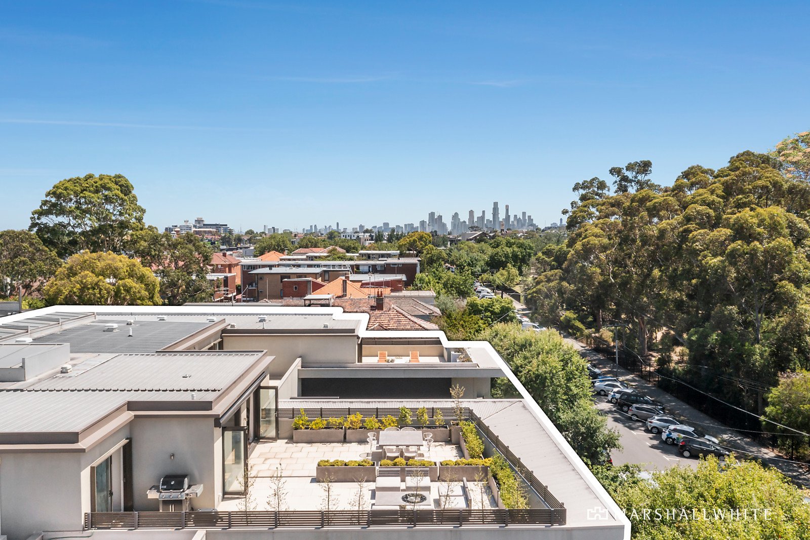Directly opposite the St Kilda Botanical Gardens, this sensational penthouse residence's lavishly refurbished dimensions and exceptionally spacious outdoor environs command breathtaking leafy views over St Kilda Botanical Gardens and to the city.