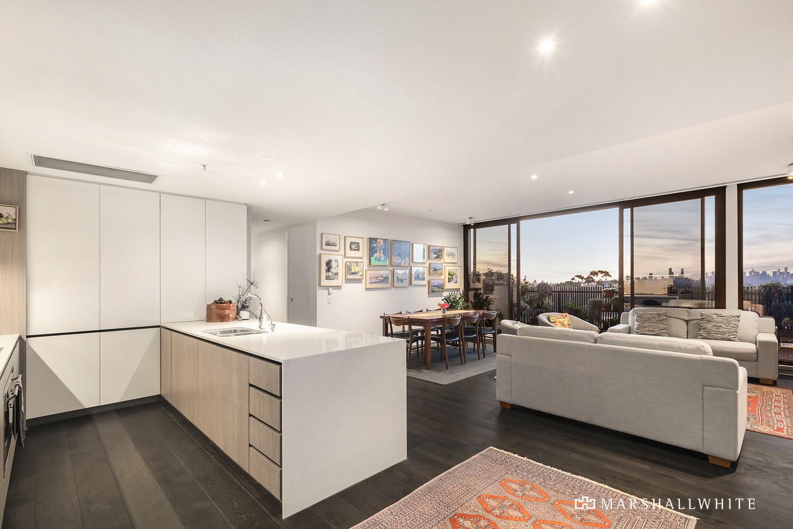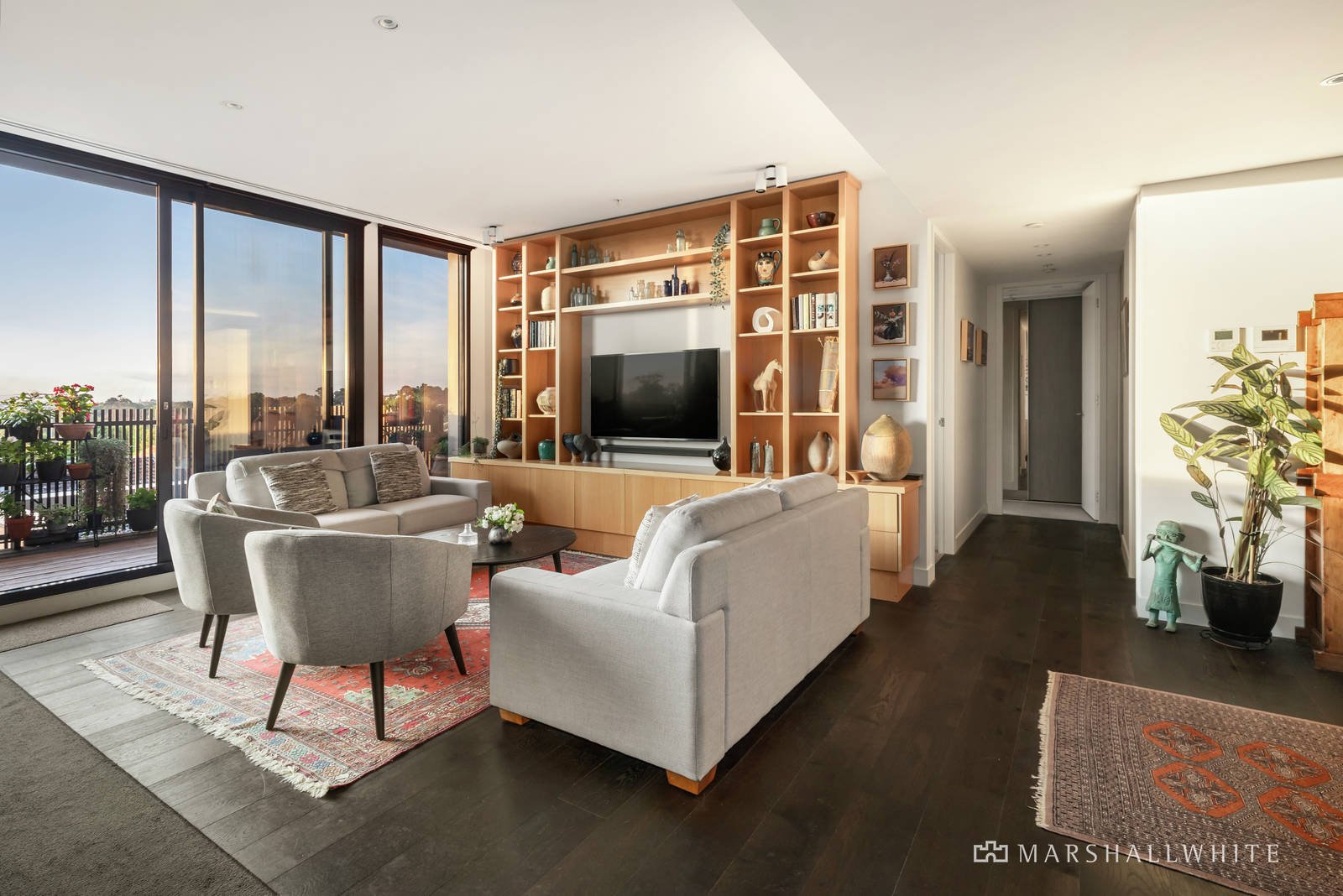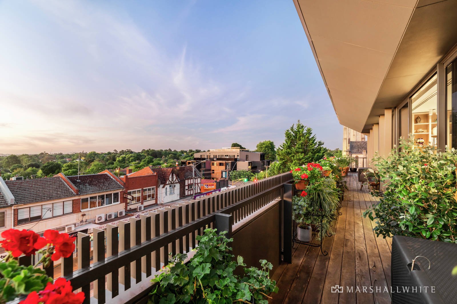 A rare opportunity to acquire a stunning penthouse apartment with one of the finest, 180 degree panoramic views across Hawthorn, Kew and Richmond to the spectacular City skyline. The perfect location to enjoy beautiful sunsets, City lights or fireworks. Luxuriously appointed and built to the highest standards - the apartment features both privacy, security and cutting-edge contemporary designer finishes. Delivering a sublime open-plan living environment with dark stained floors, floor-to-ceiling glass walls opening to a full-length entertainer's balcony capitalising on the views. Complemented by a sleek kitchen with stone benchtops, Smeg appliances and a Fisher and Paykel integrated fridge/freezer; plus a designated study nook, three carpeted bedrooms with built-in robes and balcony access; two sparkling fully-tiled bathrooms and a concealed laundry. Other features of this breathtaking home include video intercom entry with lift access, ducted heating and cooling, large storage cage, secure remote basement tandem parking for two cars.