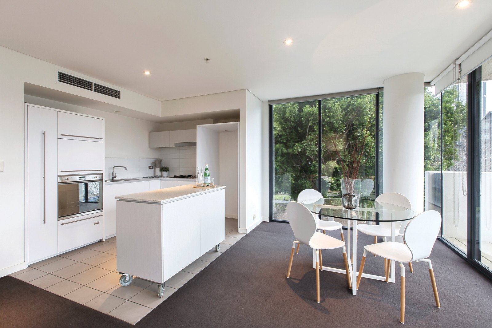Framing views of the iconic streetscape, the open-plan kitchen/dining/lounge flows to a generous entertainer's balcony and creates the most decadent setting for entertaining. The sense of luxury is further enhanced by a master bedroom with ensuite and robes, not to mention microfiber blinds, secure video entry, elevator, basement parking and access to a range of resort style facilities such as gym, pool and spa.