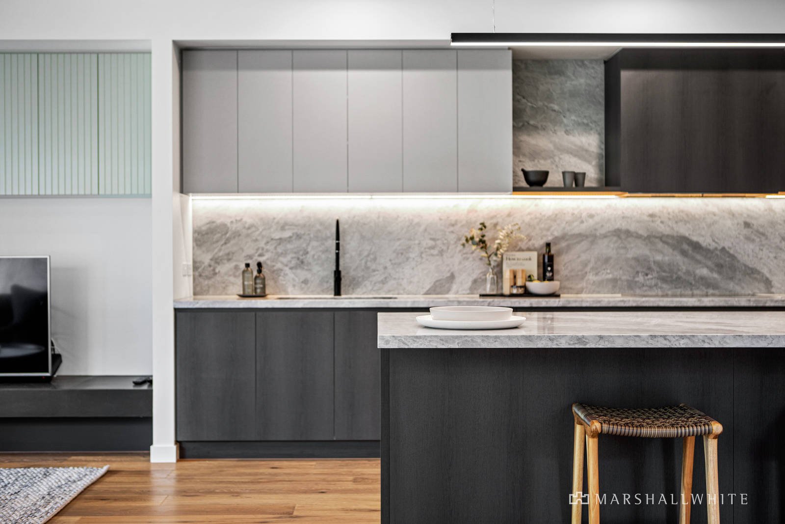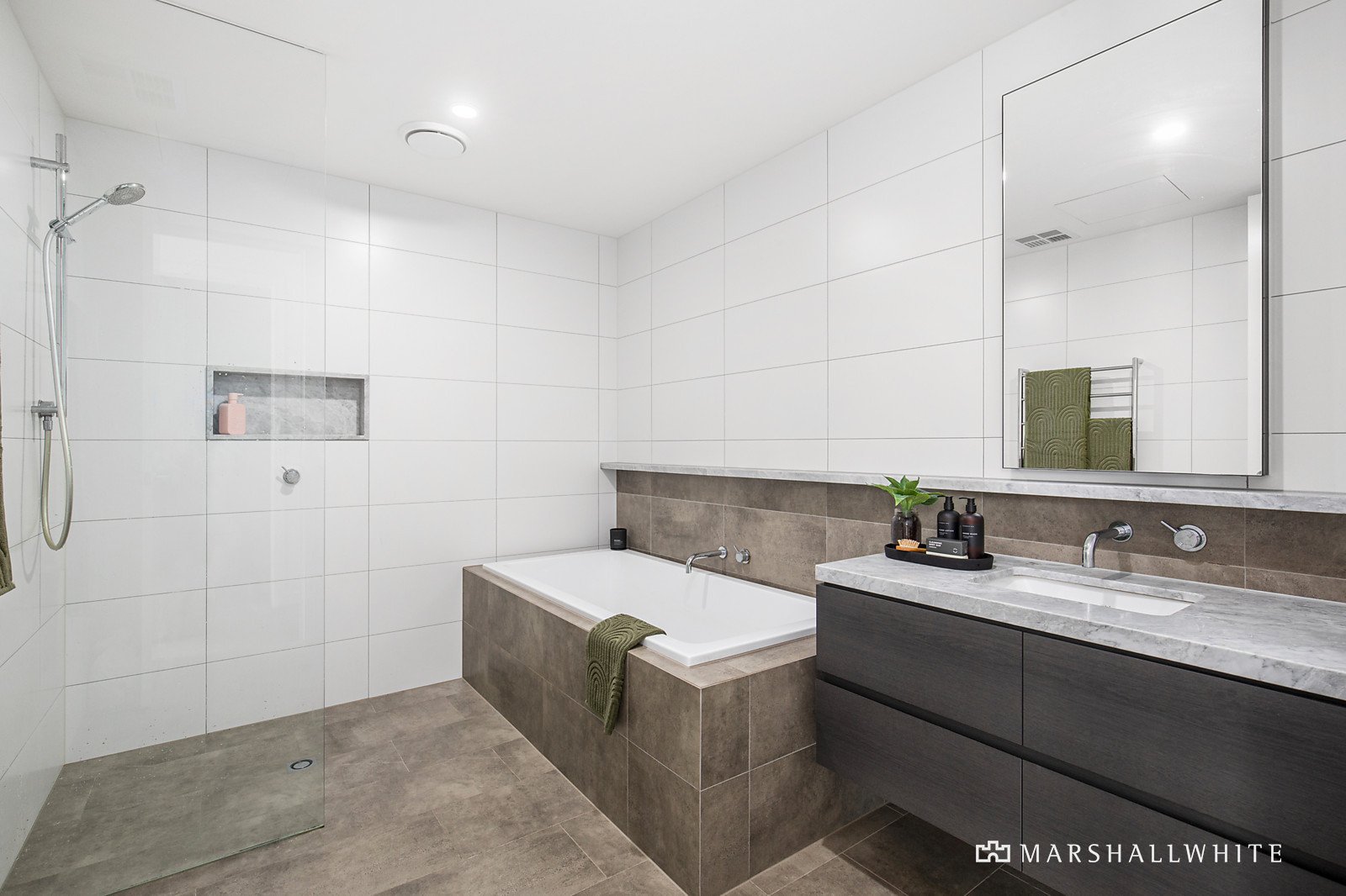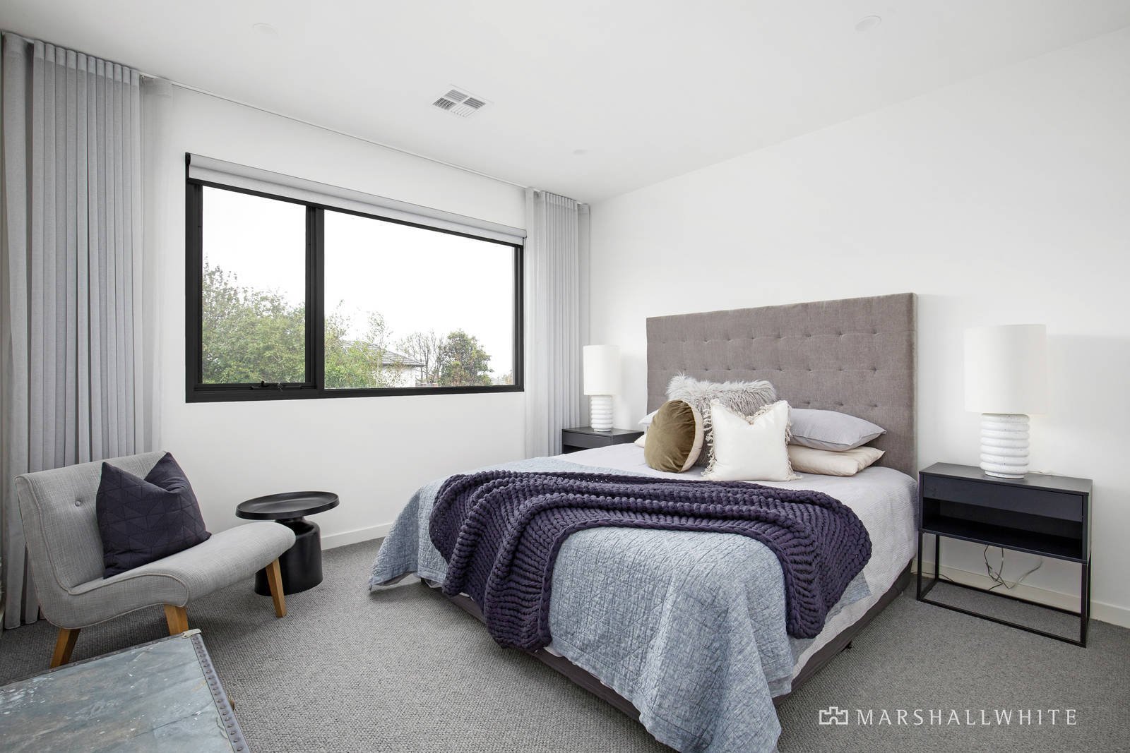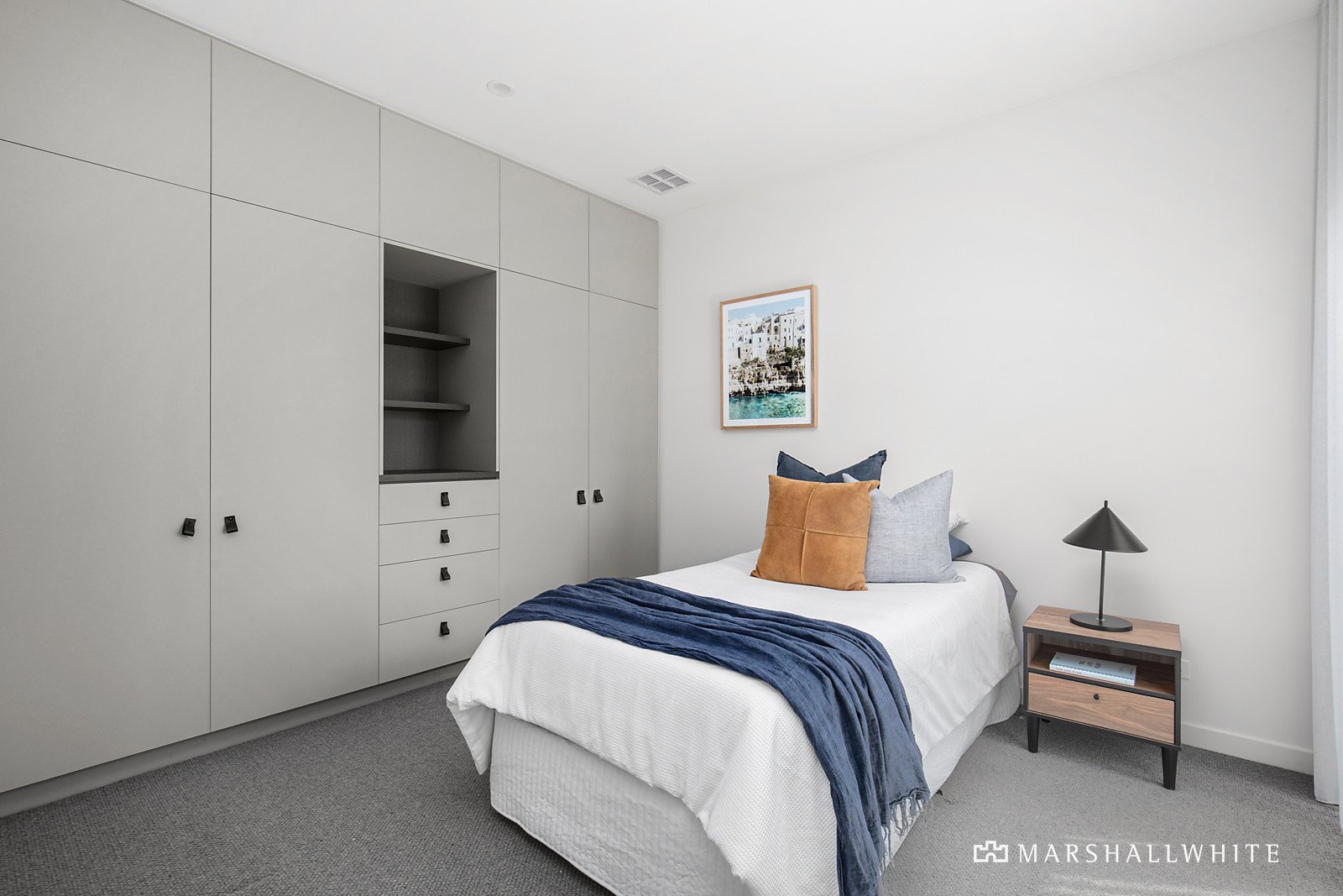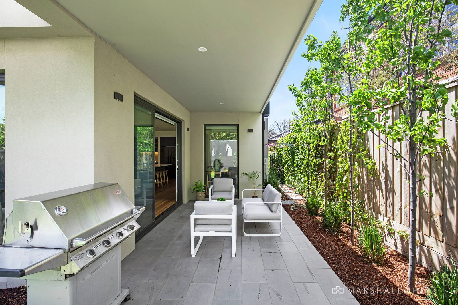 State-of-the-art collaboration between award-winning Fine Line Building Design and Austin Design Associates brings contemporary perfection to the heart of Black Rock. This impresses on so many levels, from the signature street appeal to the four-bedroom and study interior enhanced with a bay view and a sense of luxury. One look tells you this is something wonderful. Step inside and see how this works as a fine family home or indulgent hideaway, with a spacious ground-floor living and dining zone, upstairs retreat with a terrace for relaxing outdoors, and bedrooms on each level. The features and fittings are inspired. The kitchen and butler's pantry have exquisite pale grey marble splashbacks and benches, a Miele induction cooktop and two ovens, and two high-end ensuites and a bathroom impress with Rogerseller fittings. Enjoy seeing the bay from dawn to dusk from upstairs, and work from home in the well-designed study zone with a two-seater built-in desk. You can see the attention to detail and care that has gone into merging form and function, with a generous amount of storage, low-E double glazing, oak flooring, leather-tab drawers, heated towel rails, sheer curtains and blockout blinds. Outdoors is just as well-planned with an undercover dining area, low-maintenance landscaped garden, and a double garage. Sought-after address is an easy walk to the beach, close to Black Rock's cafes and shops, and Royal Melbourne Golf Club provides hectares of greenery at the end of the street.