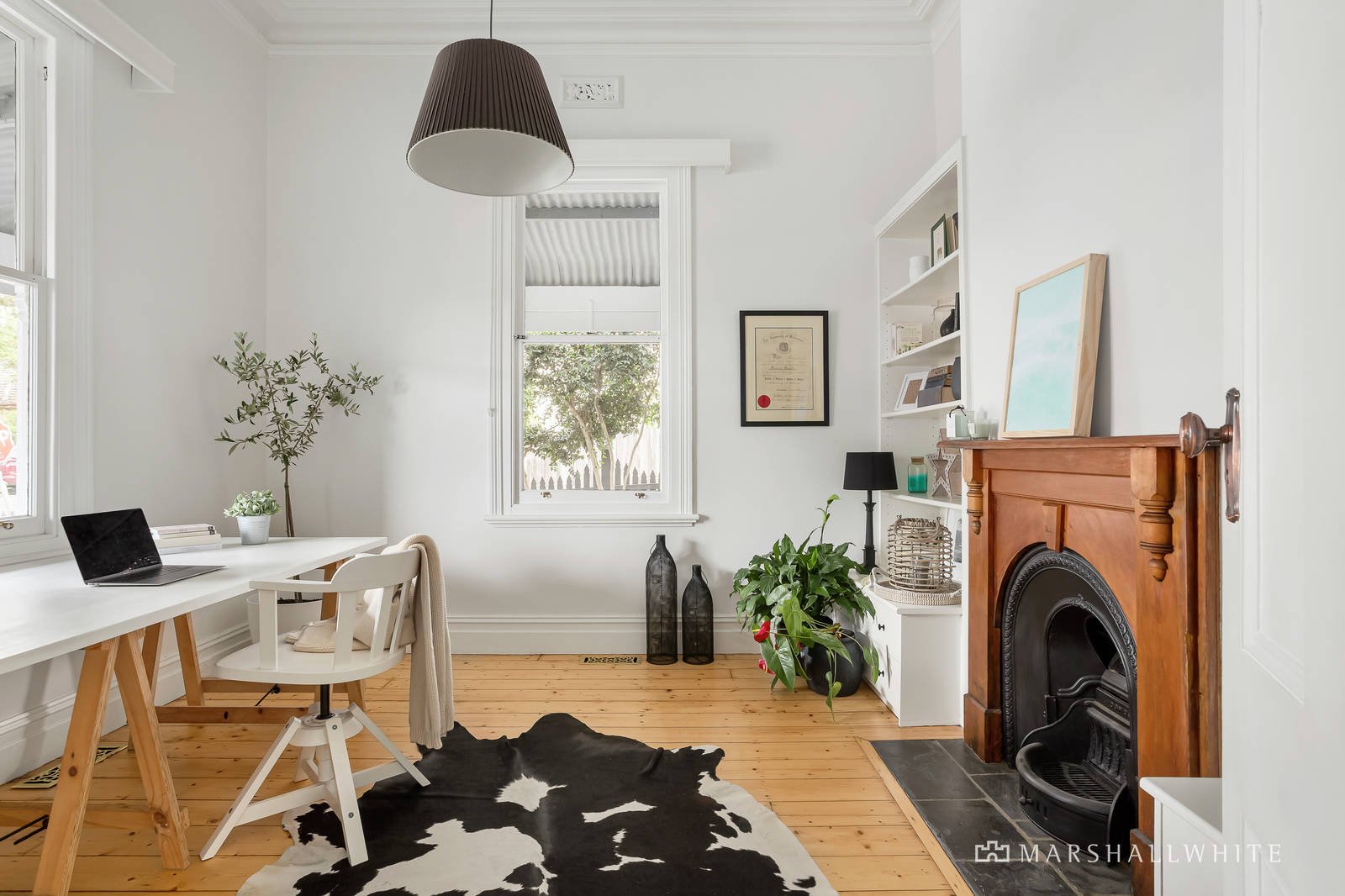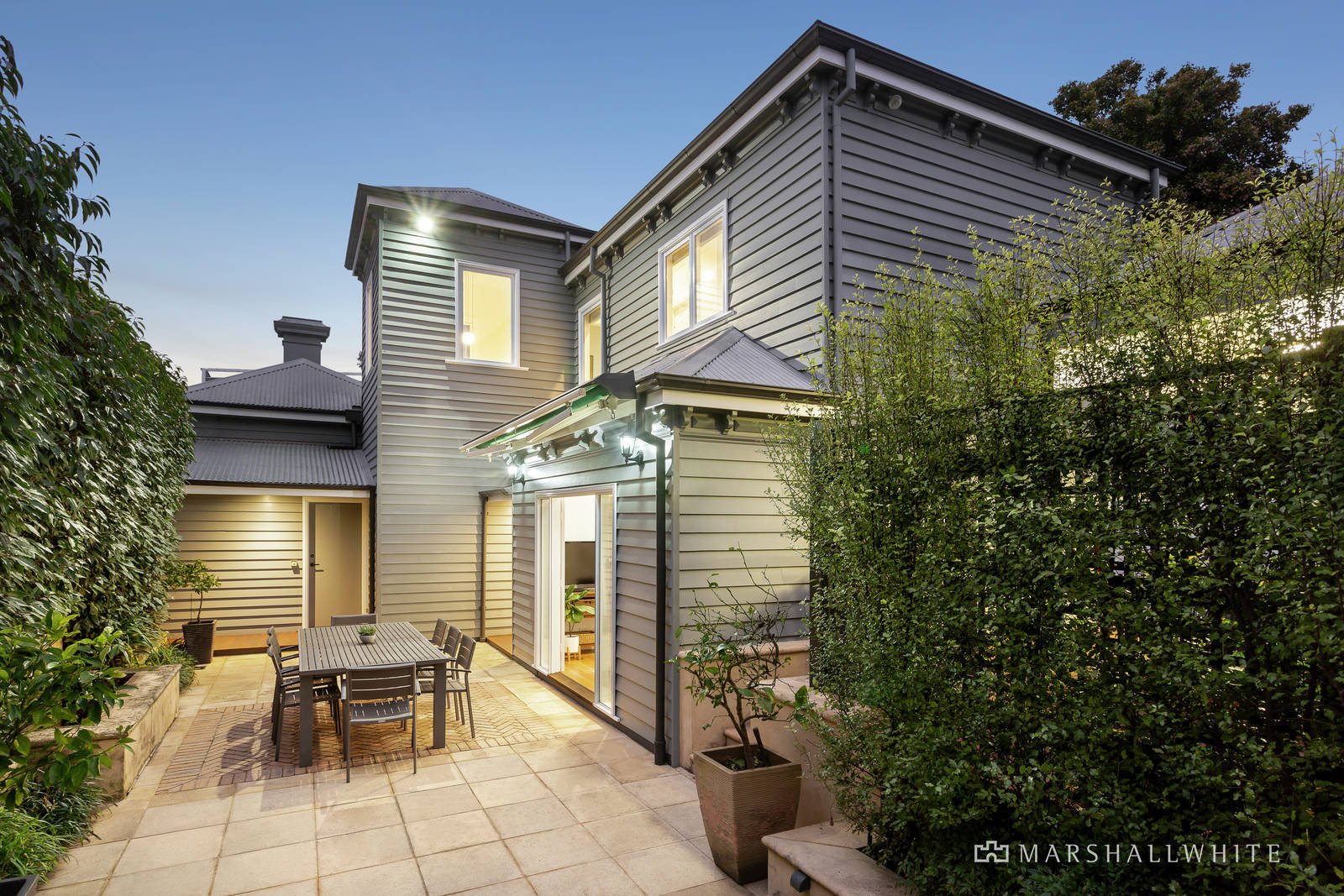 Highlighted by a crisp white, light-filled interior it features an arched hallway with Baltic Pine floors flowing past a study, two downstairs bedrooms, formal sitting room, period-style bathroom, laundry and powder room. Leading to the split-level extension with second level ceiling, large windows and tree-top views; incorporating a further two upstairs bedrooms including the main with a WIR and a period-style ensuite. An expansive family living and dining room opens on both sides through French doors and includes a stylishly appointed kitchen with granite bench-tops and premium Smeg and Bosch stainless steel appliances - perfect for indoor or outdoor entertaining in a private, hedge-lined, northern courtyard with water feature and remote awning. Other comprehensive features include ducted heating, R/C air conditioners, OFPs, new carpets upstairs, roof storage, cellar, garden shed and remote double carport with access from Malmsbury Street.