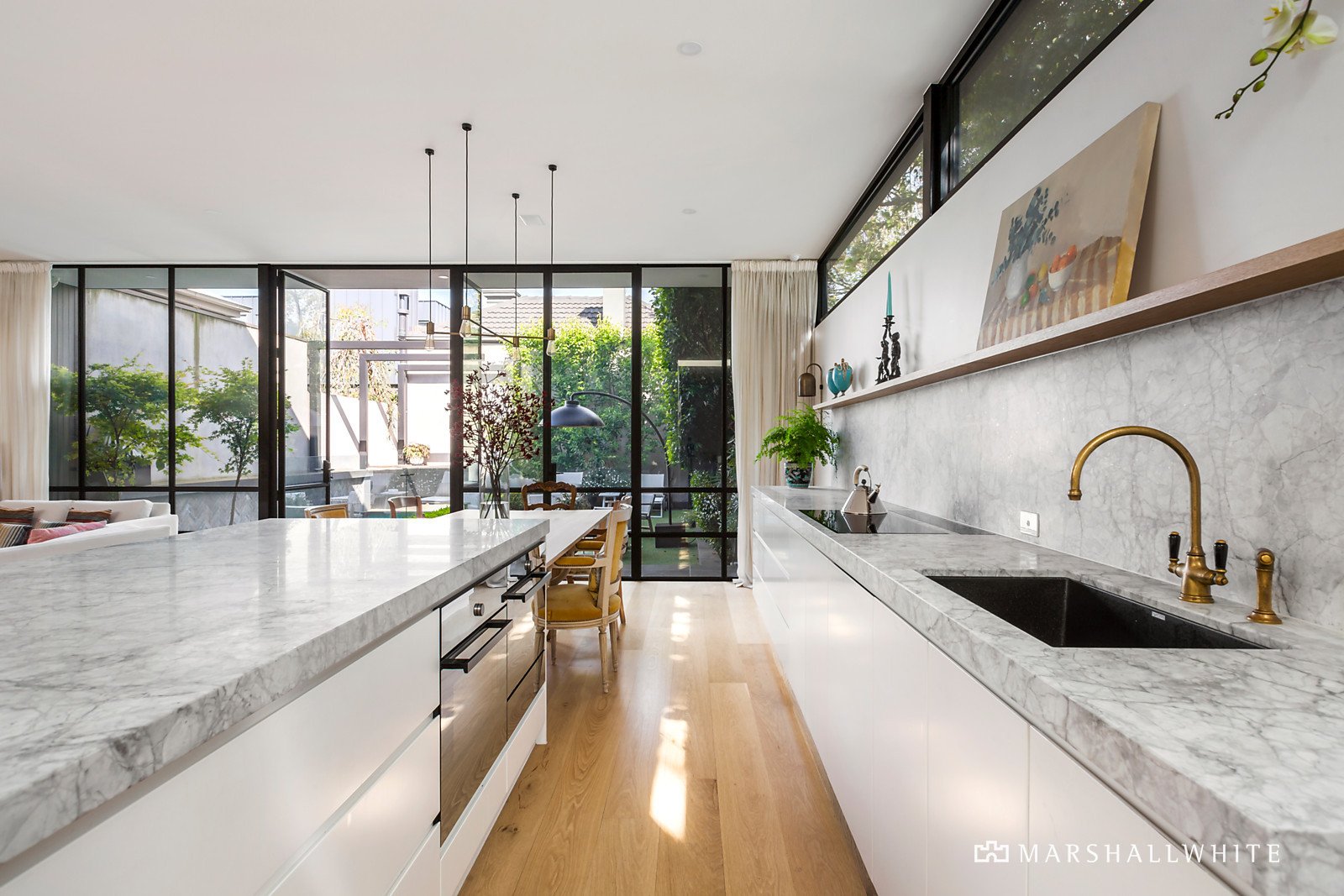 Located on a prominent corner of a prestigious Middle Park address, this recently completed meticulously built home is of the highest quality. A stunning blend of period features and contemporary design has created one of the most desired properties in the area. Beyond the wrought iron fence, wide hallway introduces an enviable ground floor master bedroom with ensuite and walk-in robe further complimented by a guest room and bathroom fully equipped with marble benchtops and tiles. The luxurious finishes continue in the spectacular kitchen that blends effortlessly to the dining area, family living, butler's pantry and study complete with steel frame windows opening to a manicured private courtyard lush with mature trees and heated pool. Upstairs introduces another living area with views over the stunning pool and skyline together with the third and fourth bedroom and central bathroom. Downstairs, a lavish basement with skylight provides another expansive living space including a fully integrated home cinema retreat complimented with a custom wine cellar, powder room, and laundry room. Crafted by award winning local builder Blu Seven, this home also includes gas heated self-cleaning fully tiled pool, BBQ area and off street parking. High end features include: American oak floors, Italian stone, V-Zug and Liebherr appliances, hydronic heating, air conditioning, CCTV, double glazing and 6 star energy efficiency rating. Ideally located to Albert Park Lake, MSAC, the beach and Armstrong Street Village this property provides a one off opportunity that cannot be denied.