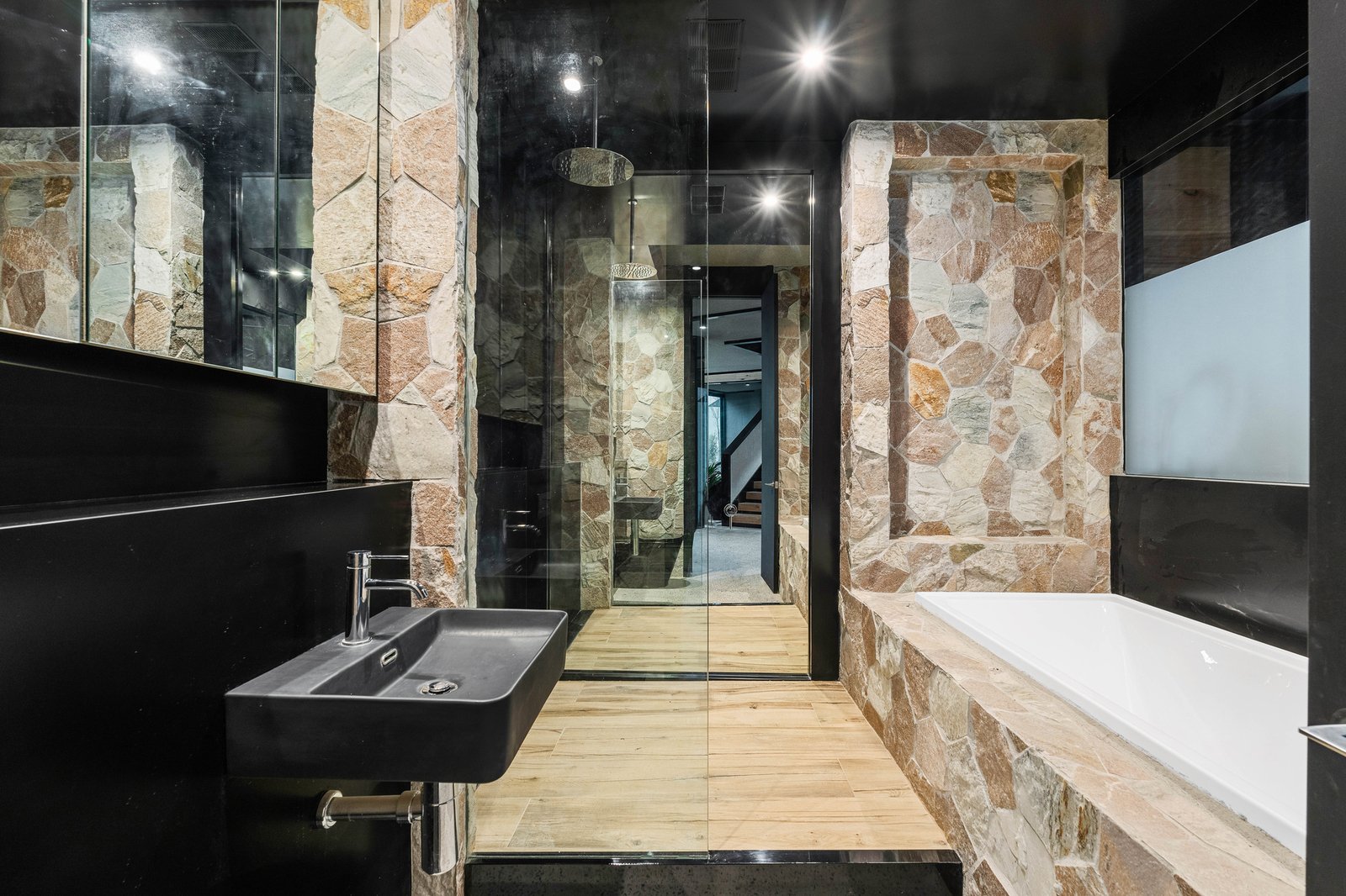 From the concrete floors and timber detail to chic and trendy black sinks, toilets and feature lighting, this home has an ultra-modern edge. The ground level welcomes residents and guests with a large sun room with access out to a landscaped garden and the river itself, sizeable home office, and a gorgeous bathroom. There are 3 magnificent bedrooms on the first floor, including the enormous master bedroom which has access to great storage and a balcony where you can enjoy views of the river. This level also includes a further two bedrooms, both with private ensuites, as well as a full bathroom and additional balcony.