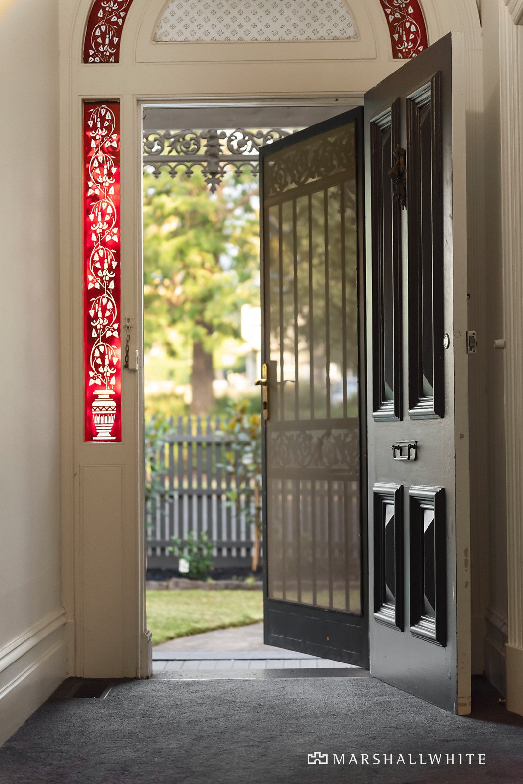 A glorious arched hallway introduces an elegant sitting room with majestic ceiling, marble fireplace and a beautiful bay window. Two generous bedrooms with marble fireplaces and built in robes and two additional double bedrooms are complemented by two stylish bathrooms. Natural light streams through the inviting living/dining room and well-equipped modern kitchen. The deep private west-facing garden accesses an under-house storeroom and large cellar space. Immaculately presented for family enjoyment while considering the enormous potential to extend and further update in the future.