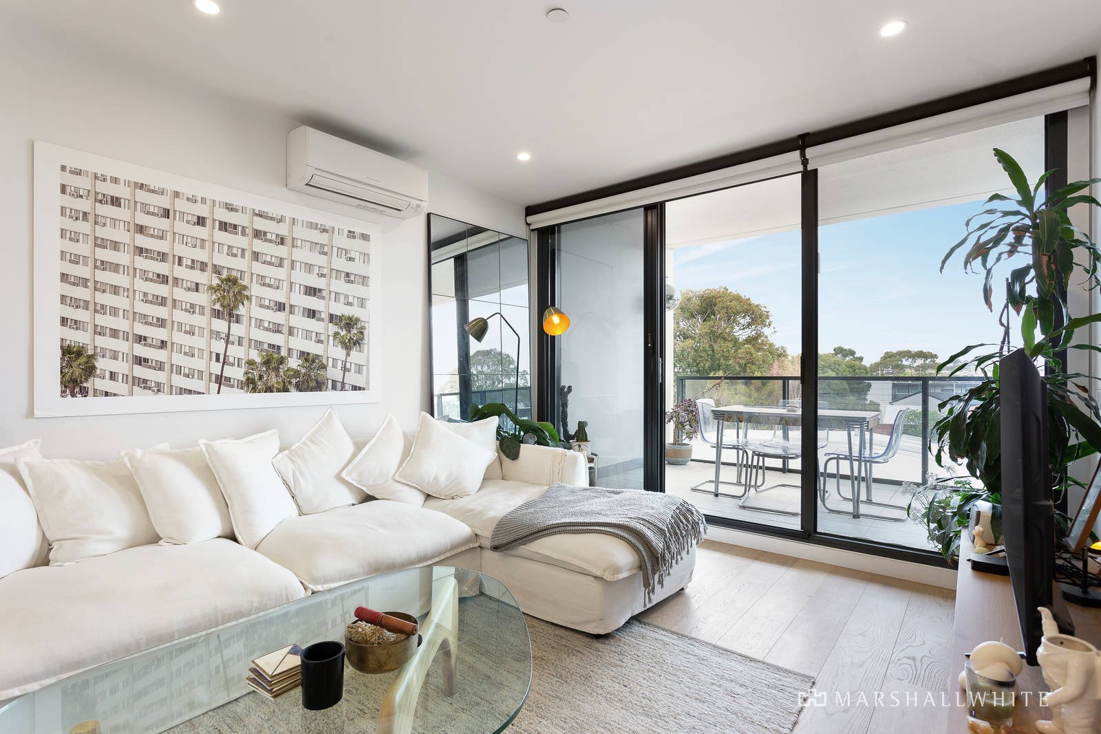 A selection of stainless-steel Miele appliances is complemented by stone benches, volumes of soft close cabinetry and an undermount Franke sink, in a sleek kitchen that overlooks dining / living where sliding doors open to a broad balcony that basks in morning sunshine. Accessed securely via video entry, with non-stacker basement parking and a floor-to-ceiling storage unit, the apartment also features mirrored built-in robes in each bedroom and Oak flooring that is perfectly on trend.