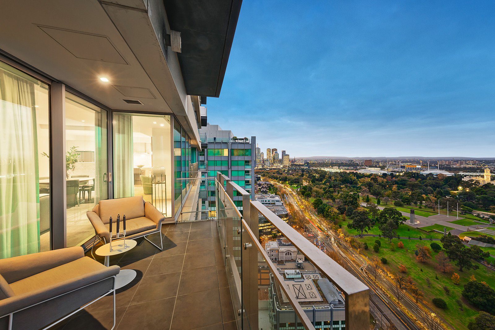 Commanding absolutely spectacular corner views of the very best of Melbourne extending from the MCG to the Domain, the Shrine, and encompassing Albert Park Lake and Port Phillip Bay, this sensational luxury apartment's designer style, generous proportions and superlative facilities take apartment living to the highest level.