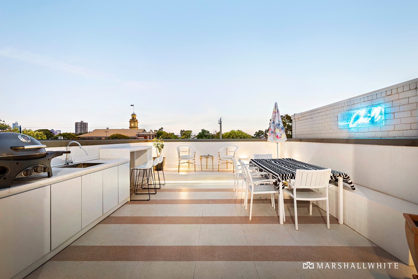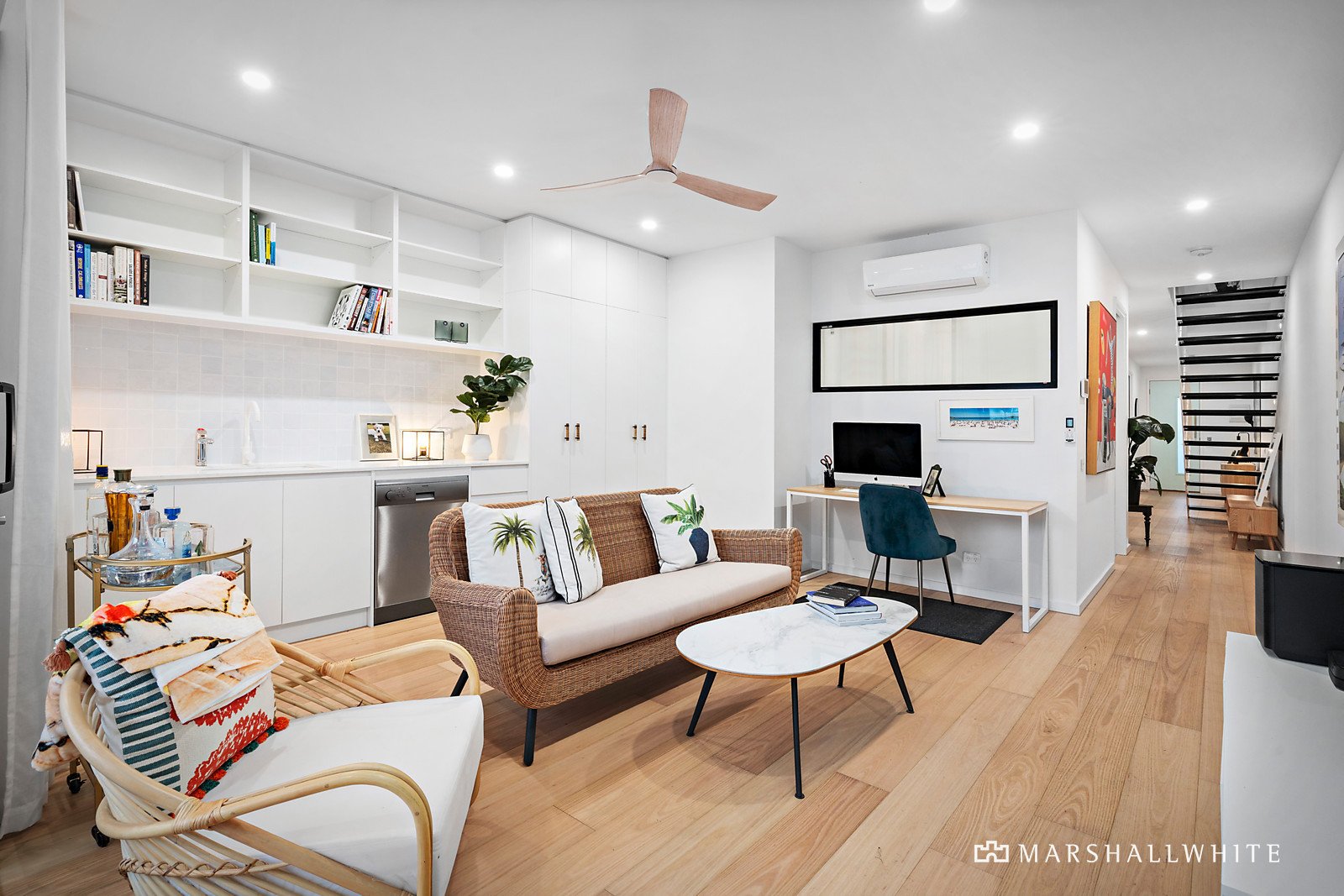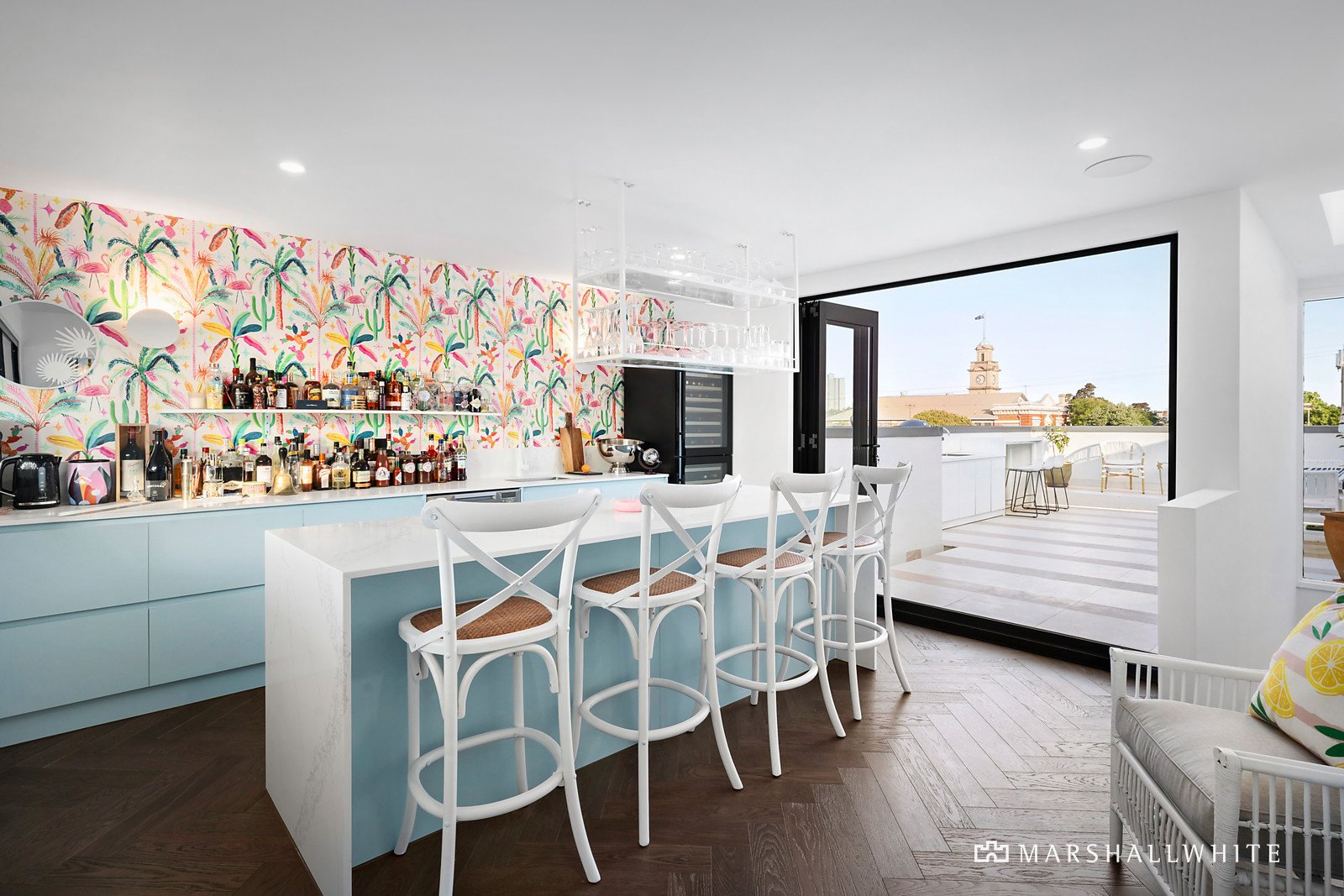 With the comfort of underfloor bathroom heating, a dishwasher on every level, a vogue powder room, split system heating/cooling, zoned sound system, ZipTap, double glazing and curation of high-end designer finishes, including feature tiling and fluted glass detailing, there is truly nothing like it.