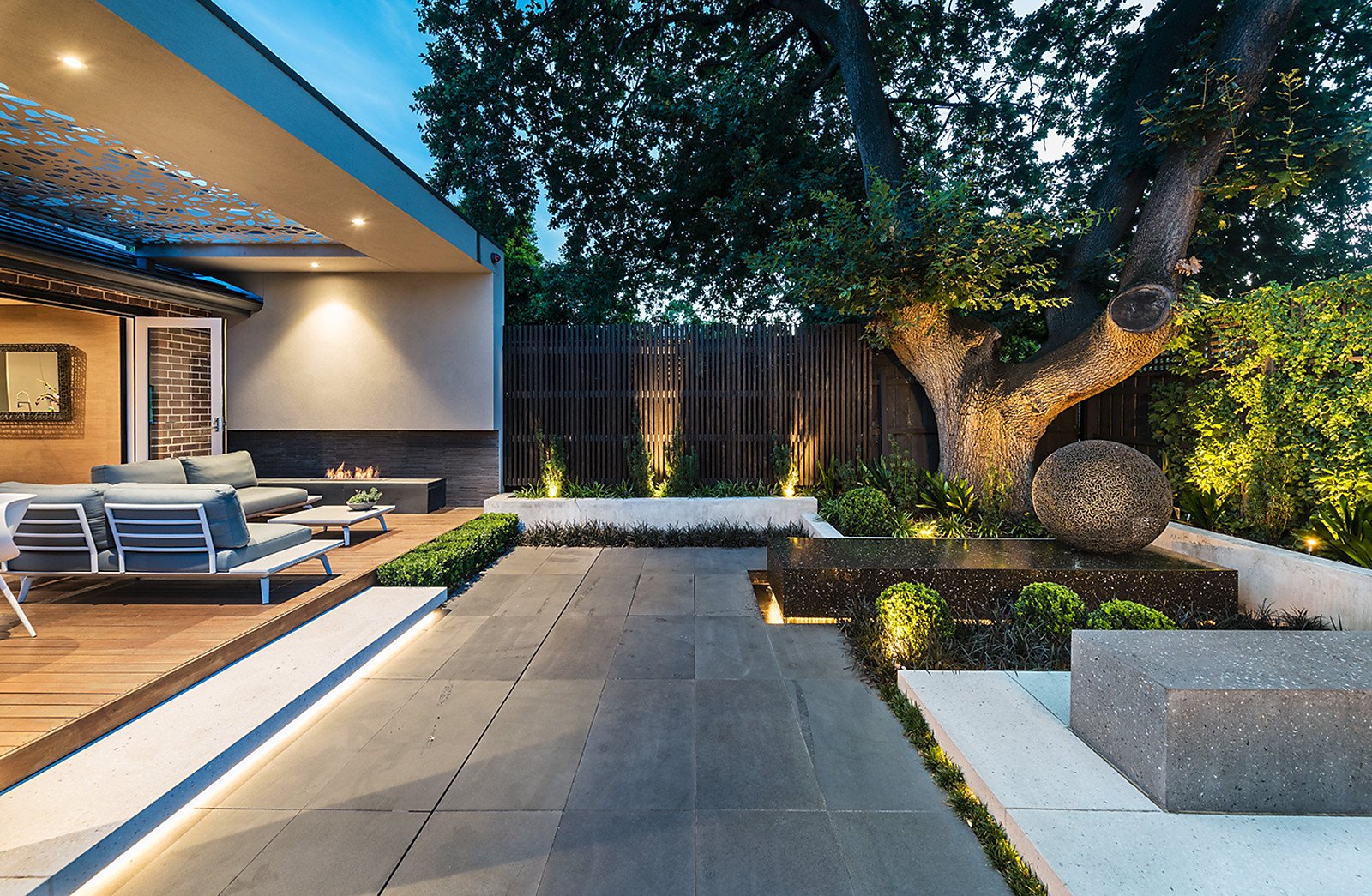 The sun-lit interior features timber floors and high ceilings through a wide entrance hall, a fitted study and generous sitting room or retreat. Impressively proportioned, the open plan living and dining room with a sleek gourmet kitchen appointed with premium Miele appliances and stone benches opens through bi-fold doors to a captivating and brilliantly landscaped northwest garden featuring a pond, sculptures, a fabulous built in BBQ and outdoor fire. An irresistible outdoor entertaining precinct shaded by a magnificent Liquid Amber Tree. Upstairs, the light-filled family accommodation comprises a lavish main bedroom with walk in robe and en suite, two double bedrooms with built in robes, a study nook and stylish bathroom.