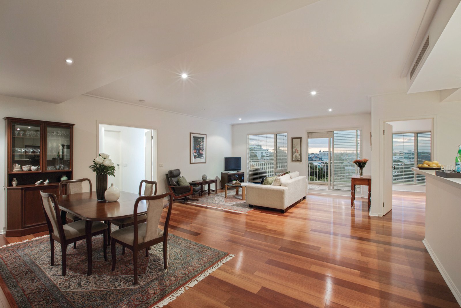 In the appropriately named The Park Apartments, this exceptional fourth floor apartment offers spectacular, light filled proportions that make the most of views over Lagoon Reserve and provides sights of the city, the bay and sunsets from its substantial balcony. Huge living and dining areas are the focal point of an outstanding floor-plan that features an open plan kitchen finished in Caesar-stone, fitted with stainless steel appliances. The balcony's brilliant outlooks provide a superb backdrop for impressive spaces that include a main bedroom in its own wing with walk in robe, ensuite and independent balcony access while two separately zoned additional bedrooms each enjoy park views and built in robes. A spa bathroom completes an outstanding apartment in a well regarded address, with the additional advantages of secure, landscaped surroundings, swimming pool, gym, a storage cage and allocated side-by-side garaging for two cars.