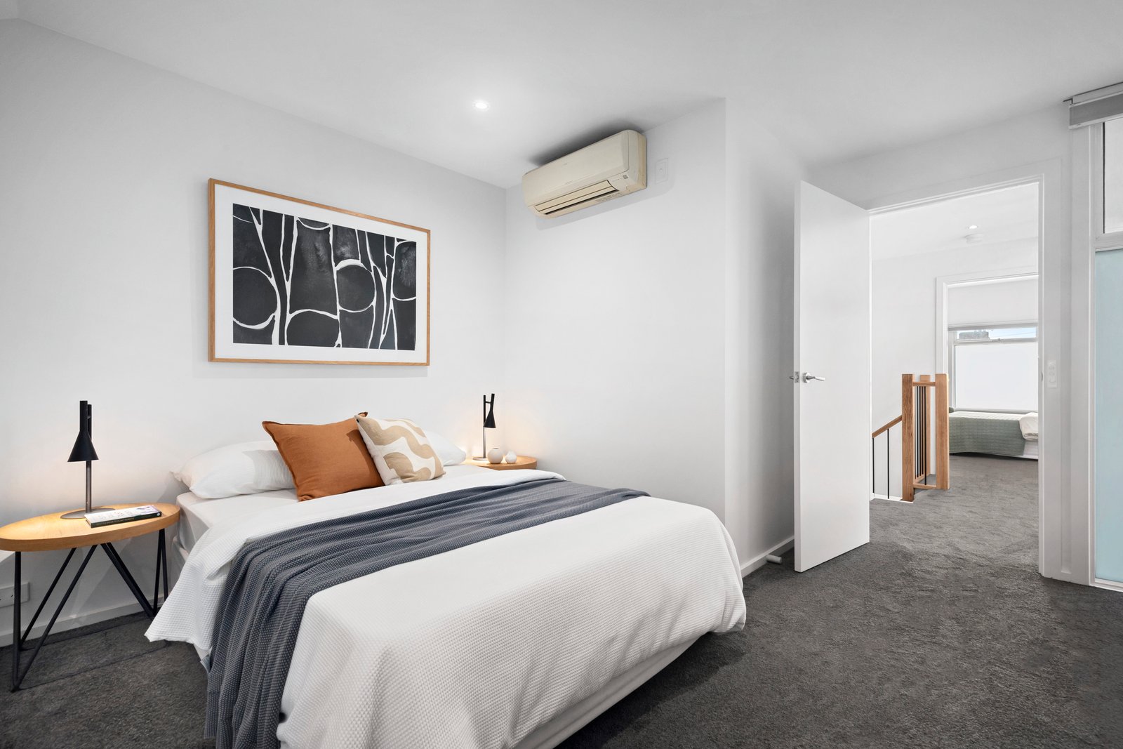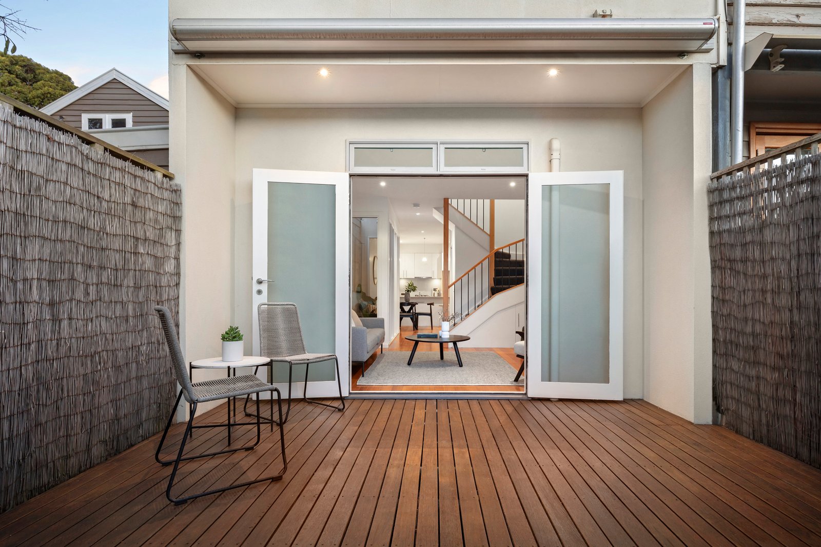 On the upper level, two spacious bedrooms boast ample storage, including the main bedroom with wall-to-wall wardrobes, both sharing the centrally located, naturally lit bathroom. Downstairs, a powder room with laundry facilities adds to the convenience, with highlights including updated double glazing throughout, hardwood floors, rear pedestrian ROW access, split system air-conditioning, and electric panel heating. This is the perfect city-edge base in a genuine lifestyle position, where the beach, excellent schools, cafes, and boutiques are all just minutes from your front door.