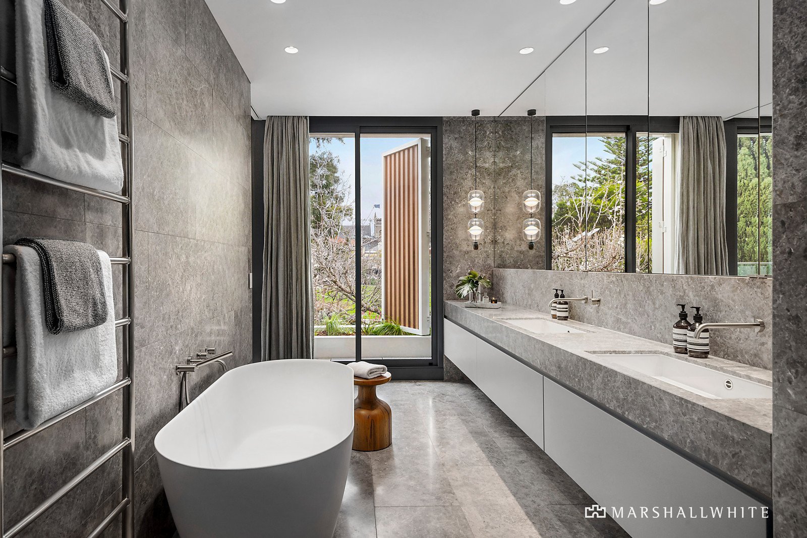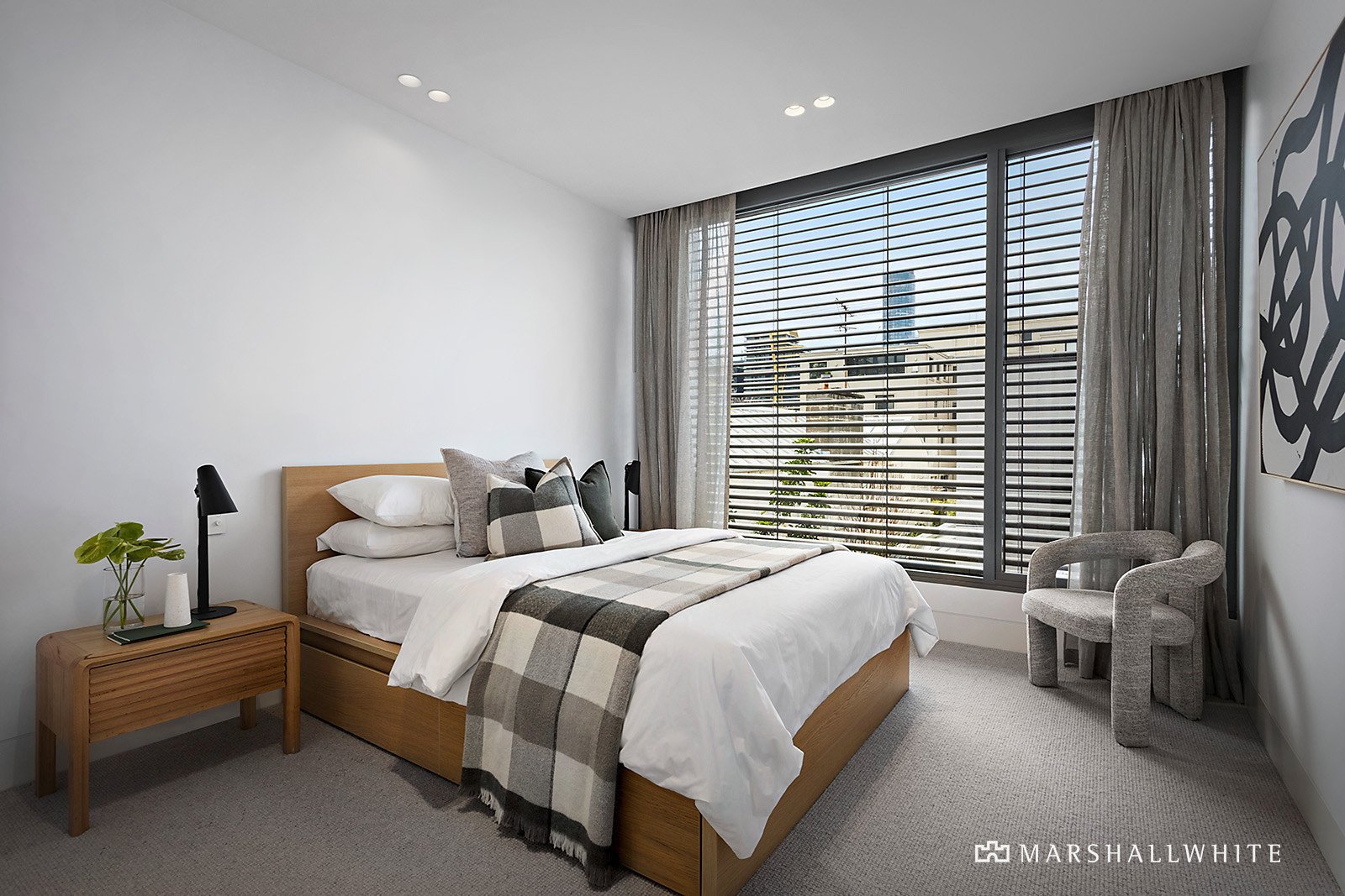 Directly opposite Caroline Gardens and just metres to the restaurants, cafes and boutiques on Toorak Rd, Sth Yarra station, trams, Fawkner Park and elite schools, it includes alarm and access control, CCTV, video intercom, keypad entry, heating/cooling, multi-room audio system, double glazing, designer lighting, bathroom floor heating, concealed storage, remote blinds, external front and rear sun blinds, solar panels, electric car charging provision, irrigation, water tank and internally accessed garage.