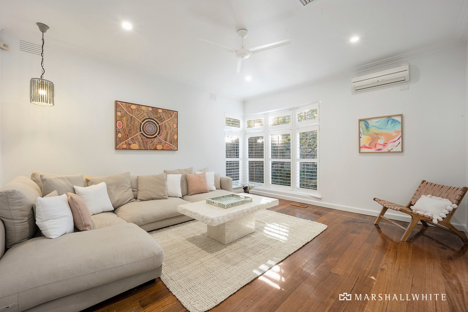 The spacious living area boasts charm and character with Mediterranean-style arches, large windows, plantation shutters and original floorboards and offers all the comfort of ducted heating, evaporative cooling and split-system A/C