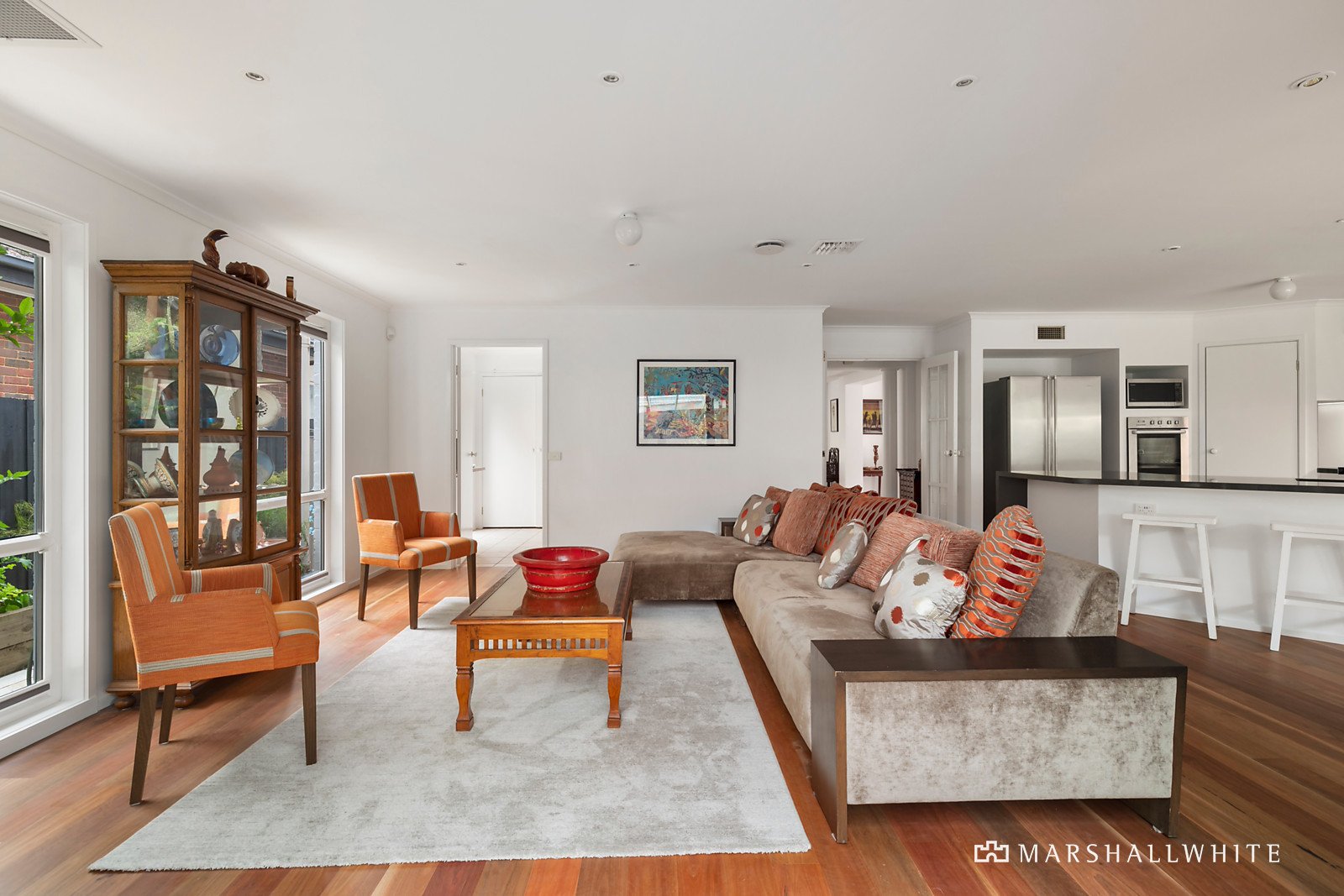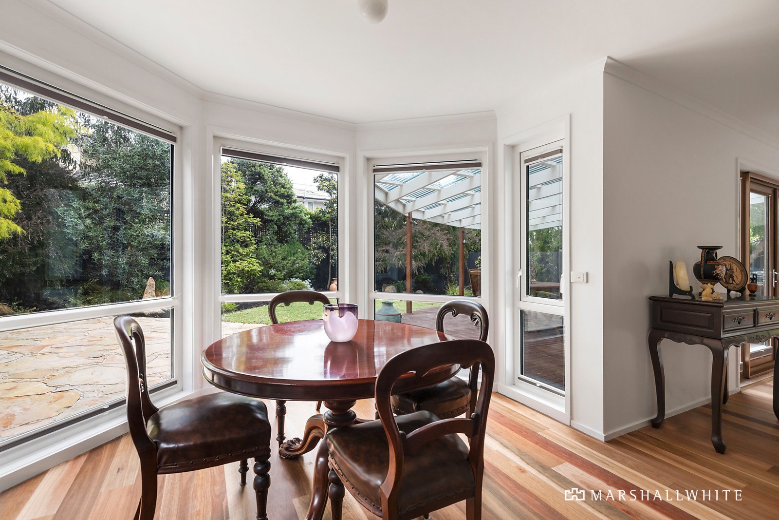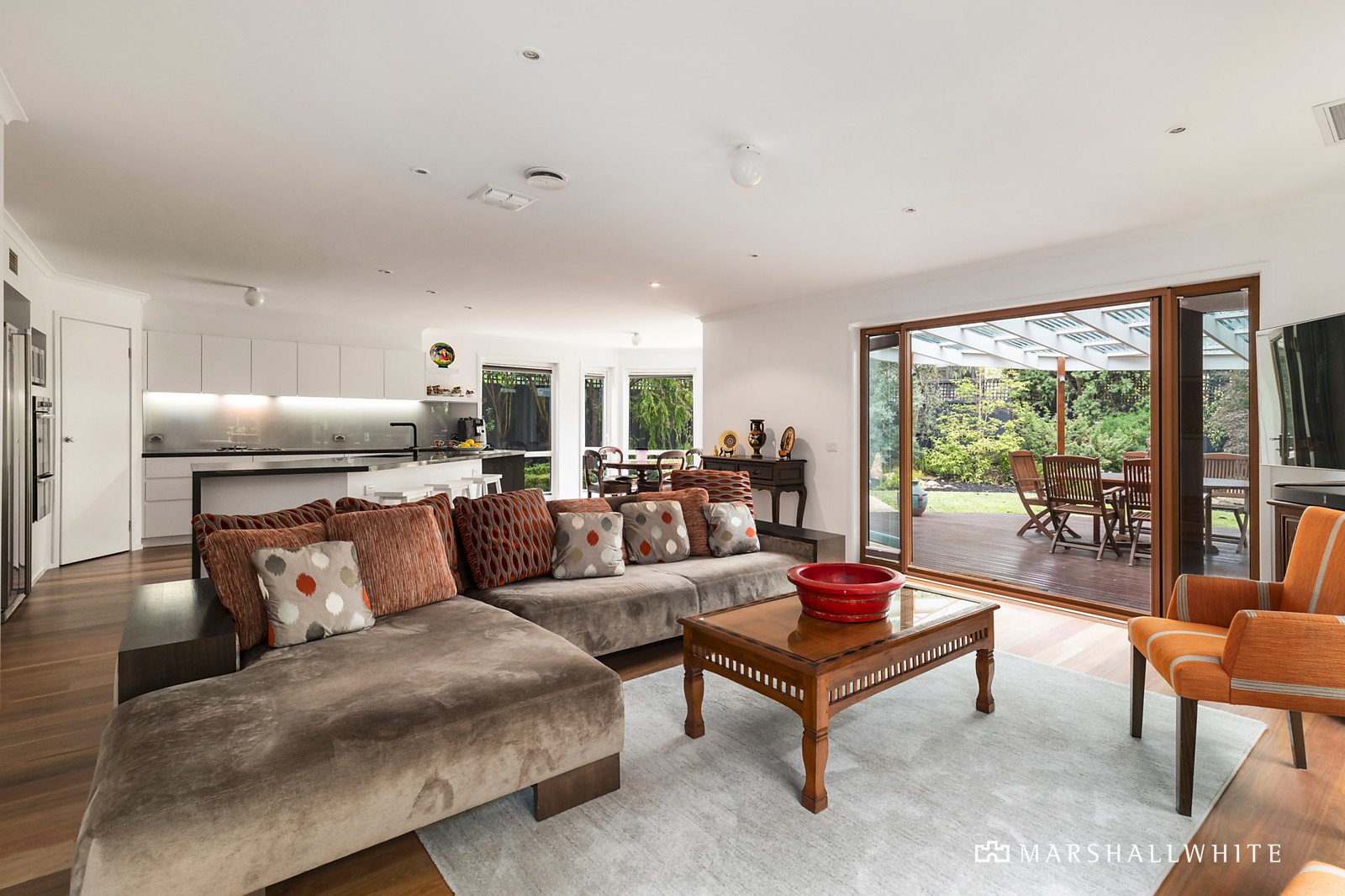 A wide entrance hall featuring hardwood floors introduces an elegant sitting room with open fire, gorgeous formal dining room overlooking the garden and a home office. The timber floors continue through the gourmet granite kitchen and expansive family living opening through French doors to a large, covered and plumbed-in BBQ, deck and the captivating landscaped garden with a crazy paved terrace offering multiple options for outdoor dining. An abundance of family accommodation upstairs comprises the generous main bedroom with bay window large enough for own personal retreat, lavish new en-suite and walk in robe, three additional double bedrooms with built in robes, a stylish bathroom and further spacious living area.