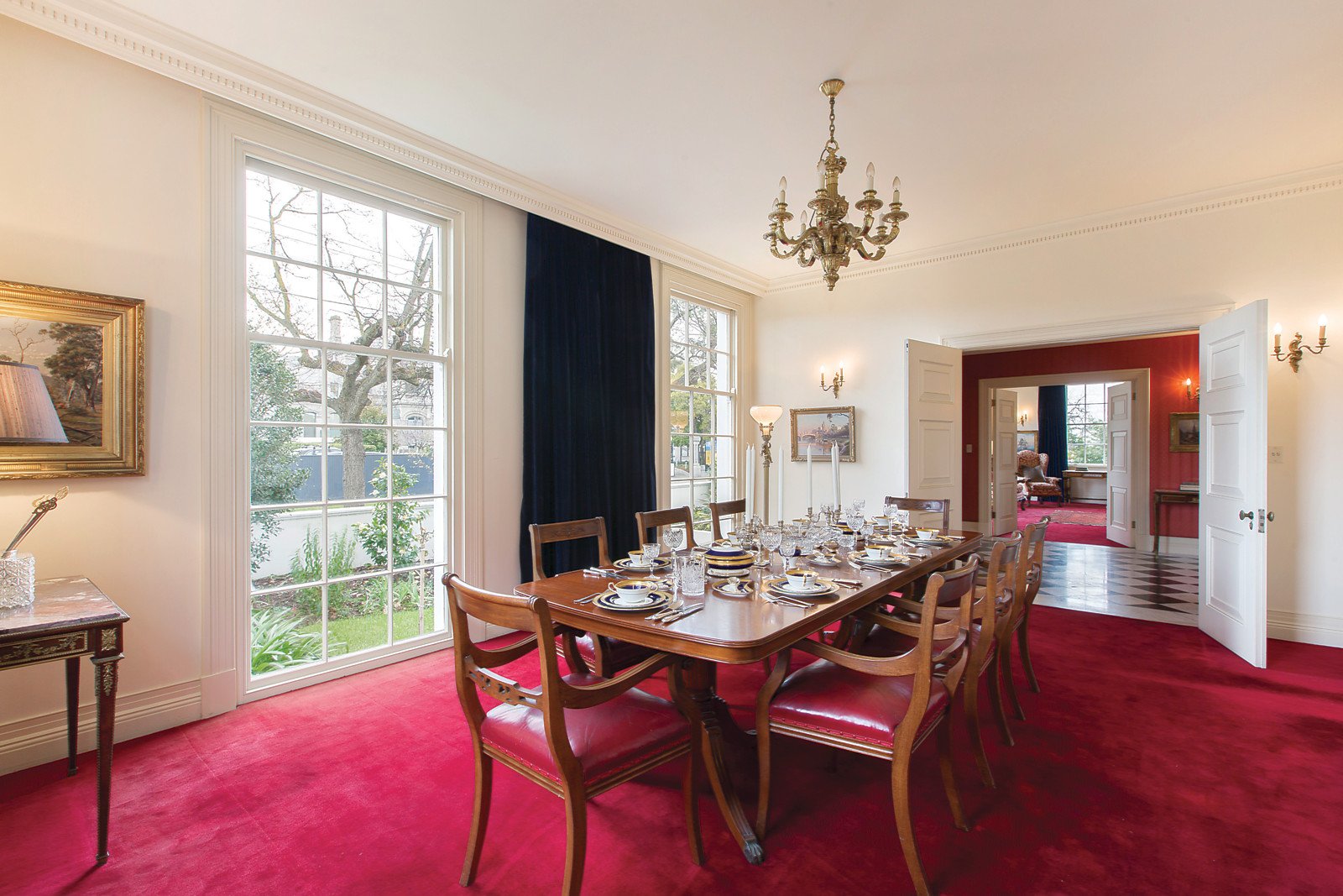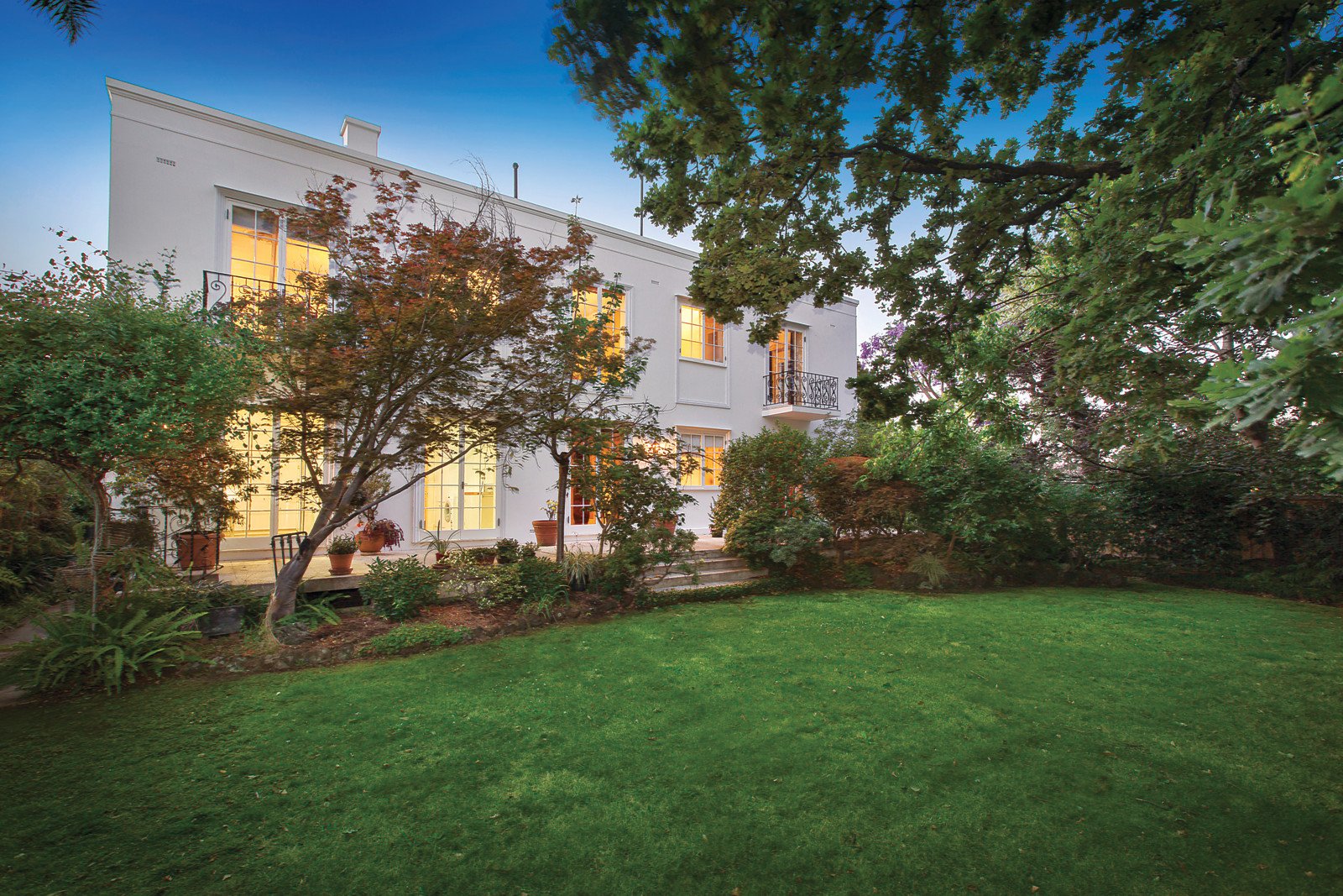 This superb interpretation of a Georgian family home with a traditional but adaptable layout features generously proportioned light-filled rooms that incorporate authentic architectural details of exceptional quality. The striking marbled reception hall introduces an elegant sitting room with open fireplace, beautiful formal dining room, and a library that leads to a panelled study overlooking the garden. The bright kitchen with casual dining area opens out to a wide elevated terrace and a private, established northeast garden. A graceful, curved staircase leads up to four generous, fitted bedrooms, a gallery and two bathrooms. The large basement includes a versatile recreation room, workshop, storage area and four car garage. The property includes a powder room, laundry, ducting for air conditioning, security system and is located near leading schools, tram, Heyington station and Toorak Village. This home is immaculately presented and has been in the one family since being built. Land 708sqm approx.