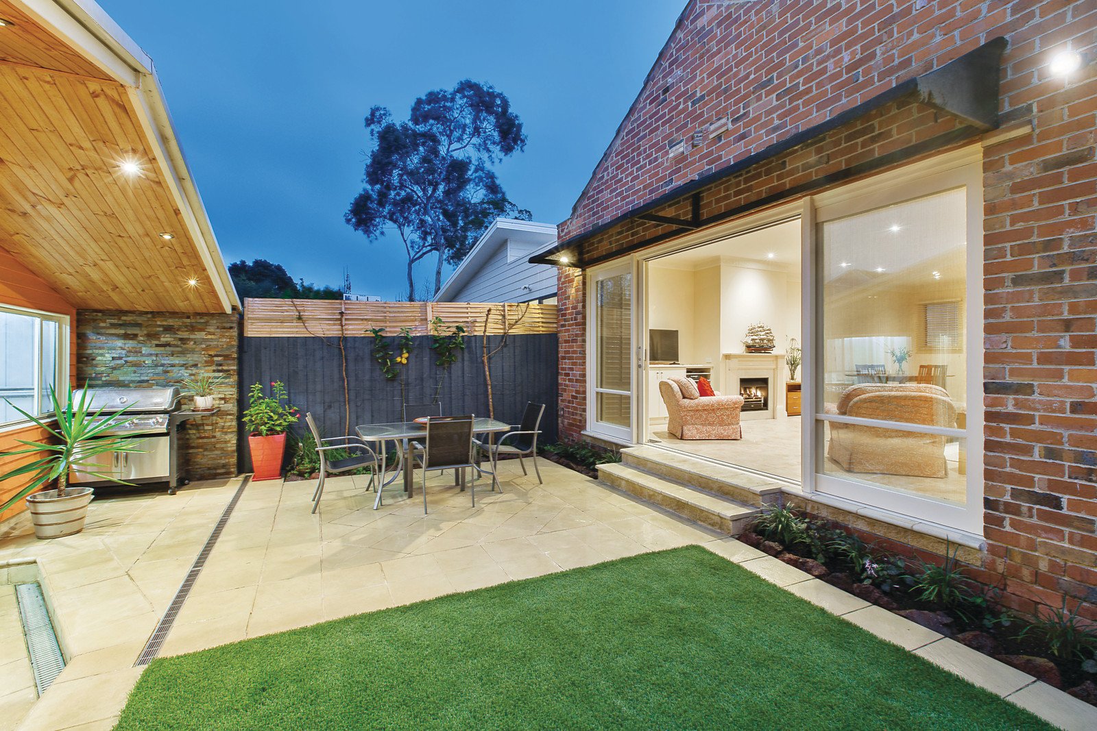 The entrance hall introduces a cleverly designed leafy light-well from which to enter the 2nd bedroom with window seat, main bedroom with open fireplace and large walk in robe, and a smart bathroom with spa bath and Euro laundry. The spacious living/dining room with Real Flame gas log fire and well appointed modern kitchen, opens to a private north east garden. At the rear is a double garage with workshop and 2nd toilet.