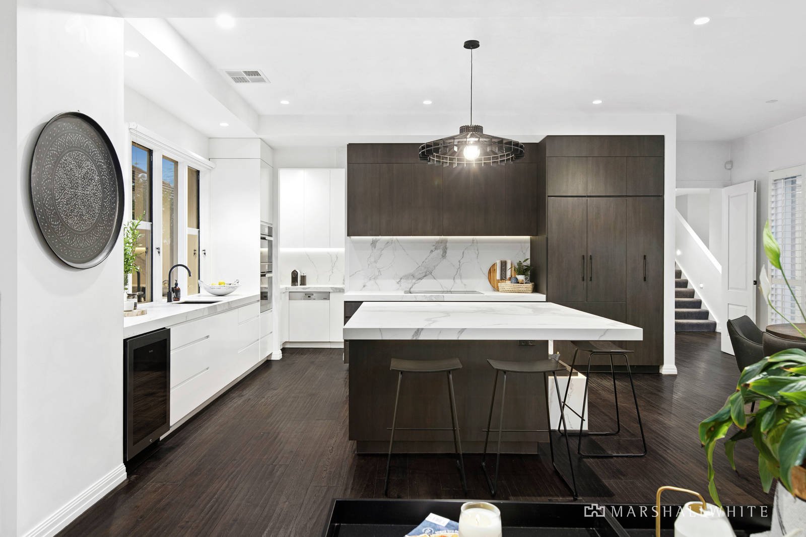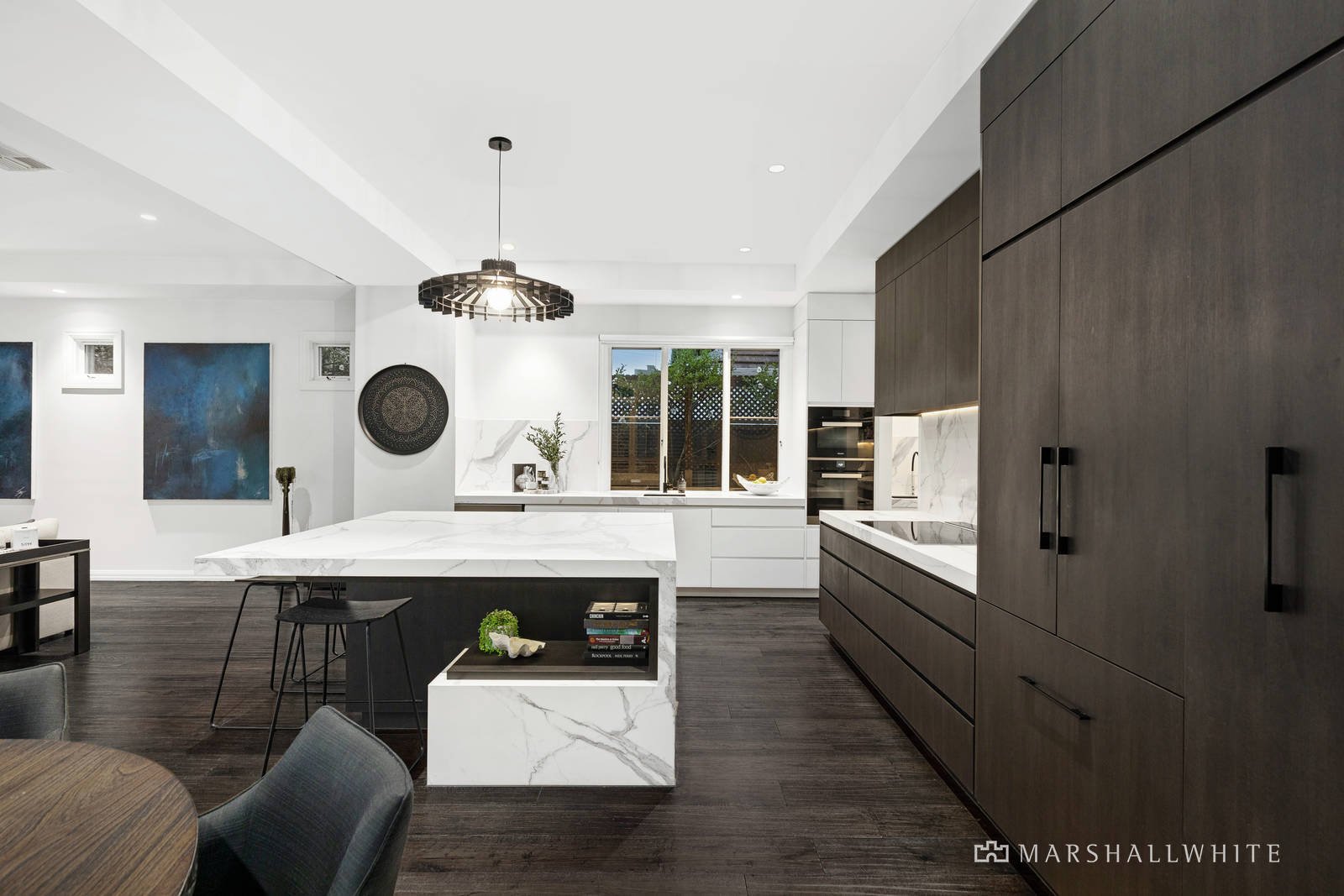Catering perfectly to the needs of large and growing families, the home presents a vast open-plan living area as well as a separate lounge and formal dining, each with 3 metre ceilings effortless connection to a superb designed landscaped gardens and alfresco entertaining.