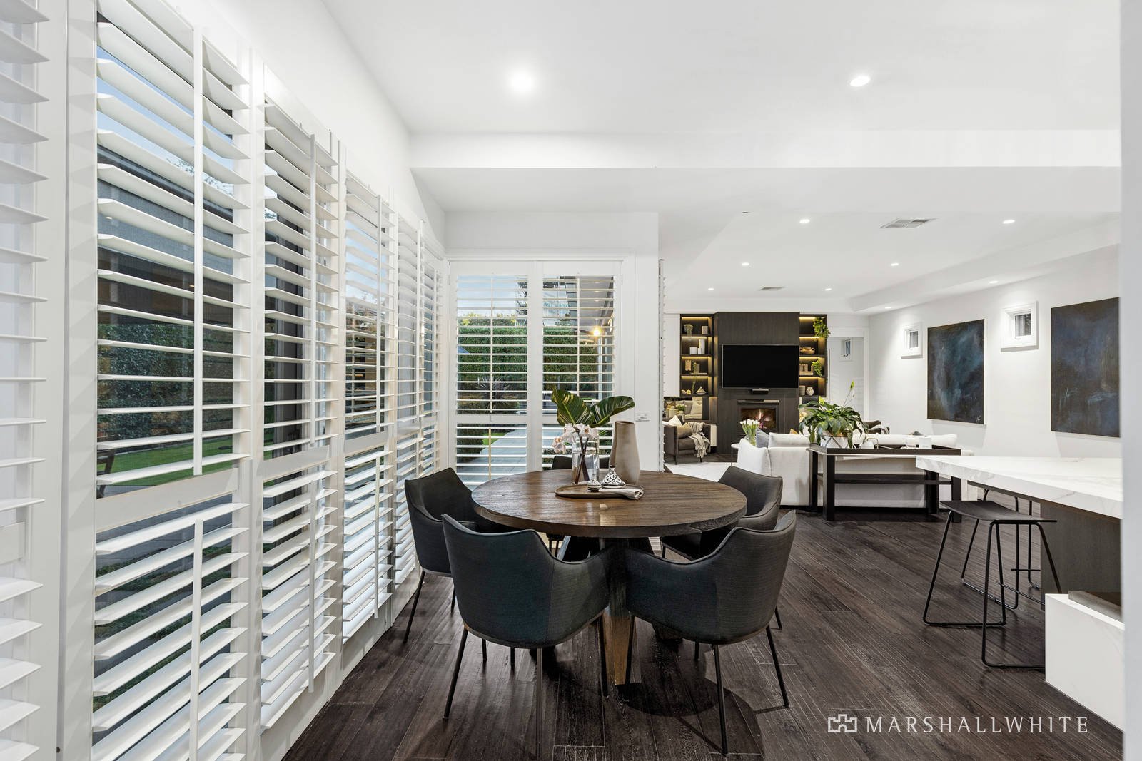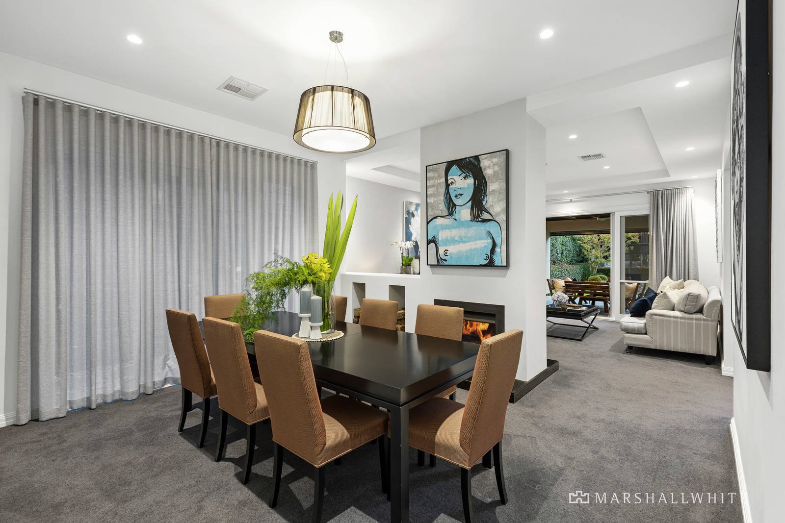 Appointed with a suite of Miele appliances and a large Butler's Pantry, the kitchen/meals/living is organised around an over-sized island bench of stone and suited to gourmet food preparation, whilst the lounge/dining is warmed by a two-way fireplace.
