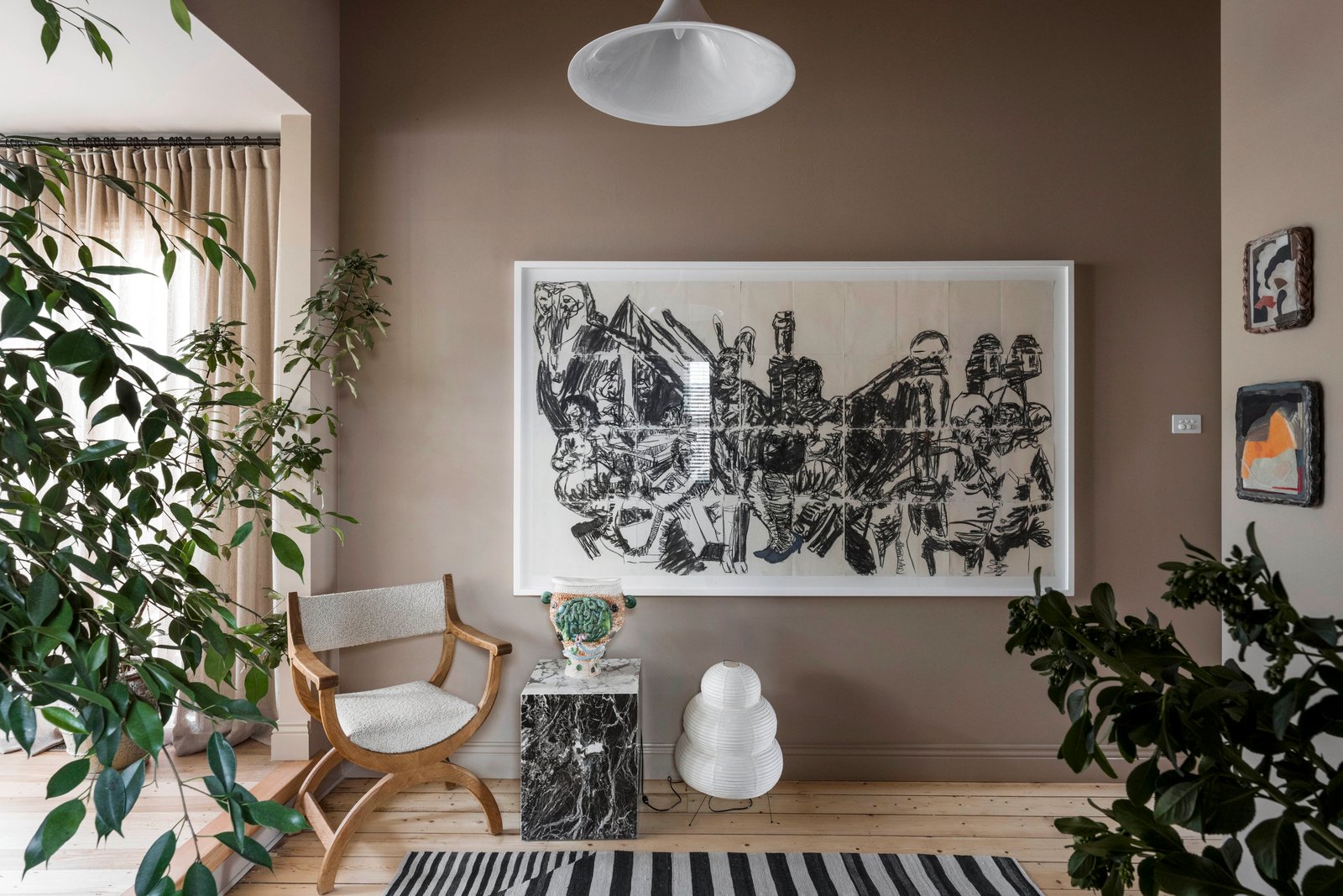 Defined by soaring ceilings and wood floors, the arched hallway introduces a captivating bedroom with bay window, open fire and built in robe. A second double bedroom with gas fire and robes, a lavish Russo Levento marble bathroom with custom designed bath/shower space and a home office area (currently styled as an art room).