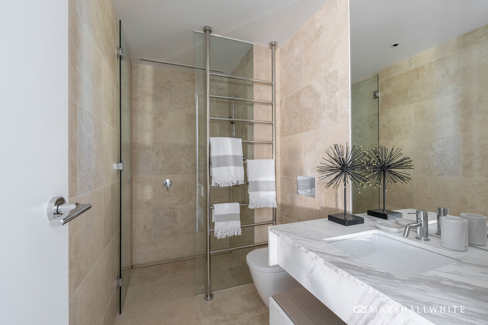 Wind back the stacked sliding glass to entertain on the full-width terrace, offering uninterrupted views and the perfect venue for year-round enjoyment. Three double bedrooms with custom robes include the main suite, featuring a designer dressing room with a marble island and a deluxe en suite with a freestanding bath and concealed WC. Unwind in a world of luxury with reverse-cycle heating/cooling, laundry/butlers pantry and two dedicated side-by-side parking spaces, and enjoy the undisturbed setting of this elite development, with everything you need on your doorstep.