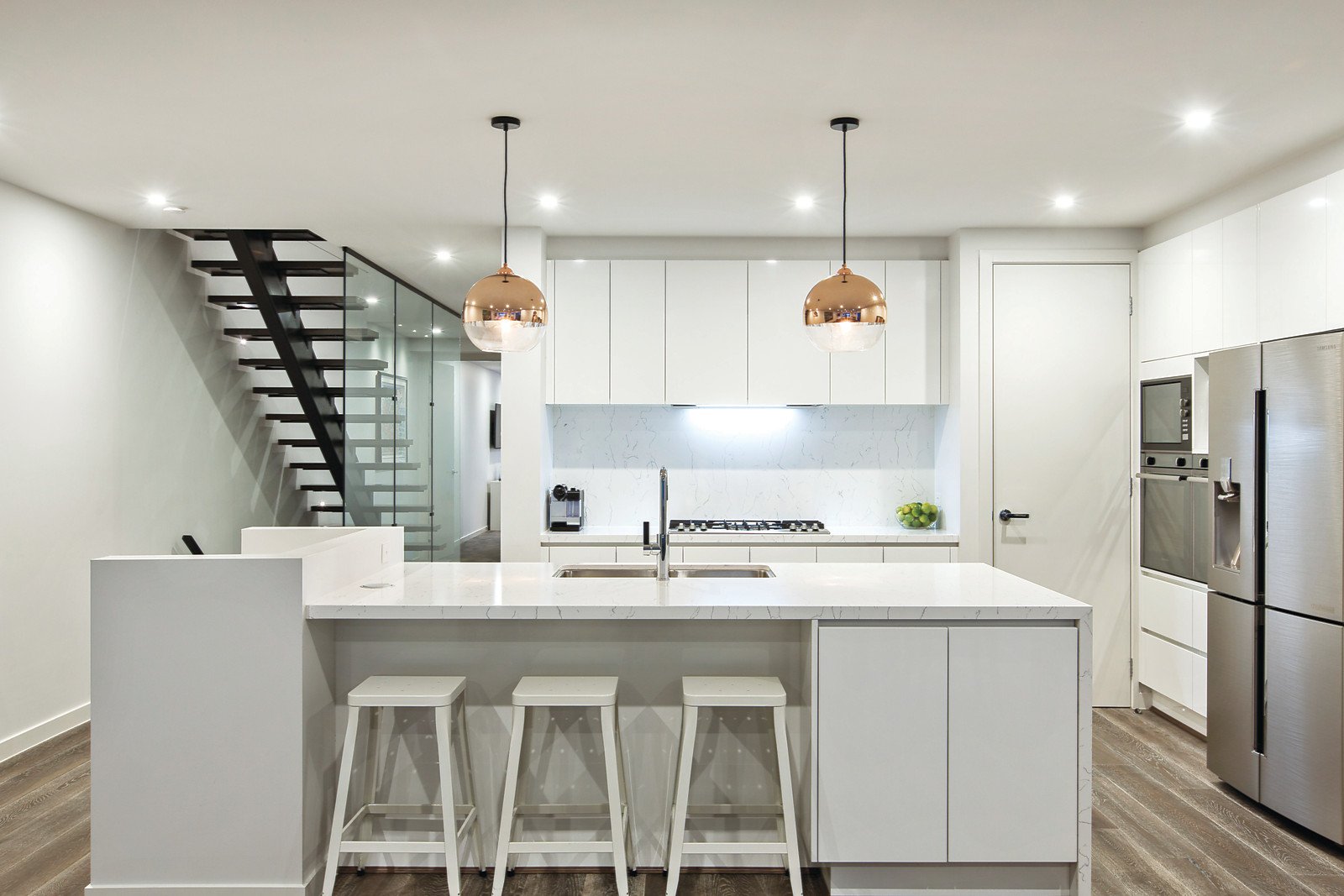 A central kitchen with stone waterfall benches, generous pantry, Ariston appliances plus a study nook complement the family living zone with built-in surround sound. Completing the first floor is a home office/study, powder room and main bedroom with a spacious walk-in robe and lavish ensuite with rain shower and double vanity. Upstairs presents three additional light-filled bedrooms with built-in robes and a luxury central bathroom with a separate powder room.