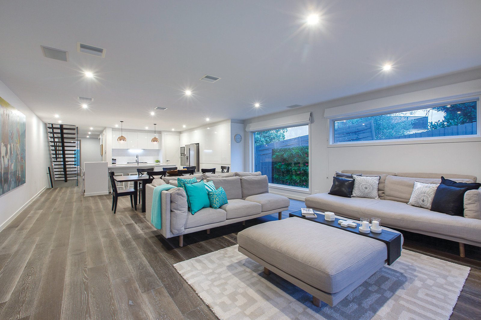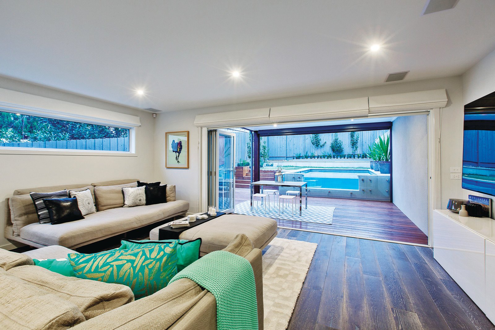 This recently completed four-bedroom residence encapsulates unsurpassed contemporary family living with appointments of luxury and the appeal of expansive proportions. An attractive façade presents an immaculately landscaped front garden. The home features large, open-plan living and dining zones which open to an inviting al fresco outdoor entertainment area with timber deck, retractable awning, cafe blind, built-in barbeque, outdoor heating and speakers, as well as a glorious pool with glass front.