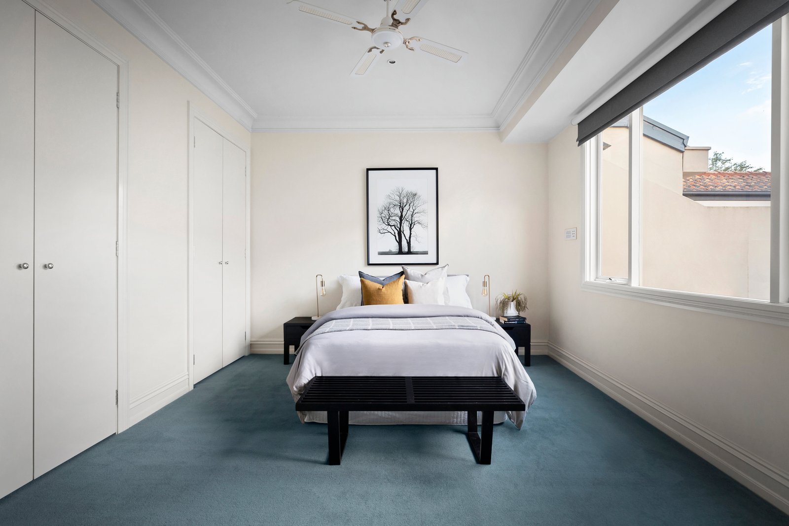 Soaring ceilings accentuate the scale of the gracious sitting room while abundant northern light illuminates every inch. Bi-fold doors connect or separate the adjacent, equally generous living/dining room served by a superb gourmet kitchen appointed with stone benches and stainless-steel appliances. Outside, a private paved courtyard invites al fresco dining, while a large double garage at the rear, accessed by a wide right-of-way, ensures convenience and security for two large cars.