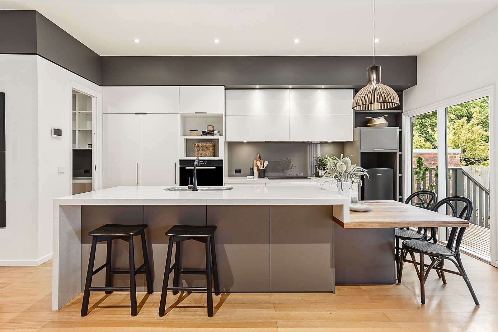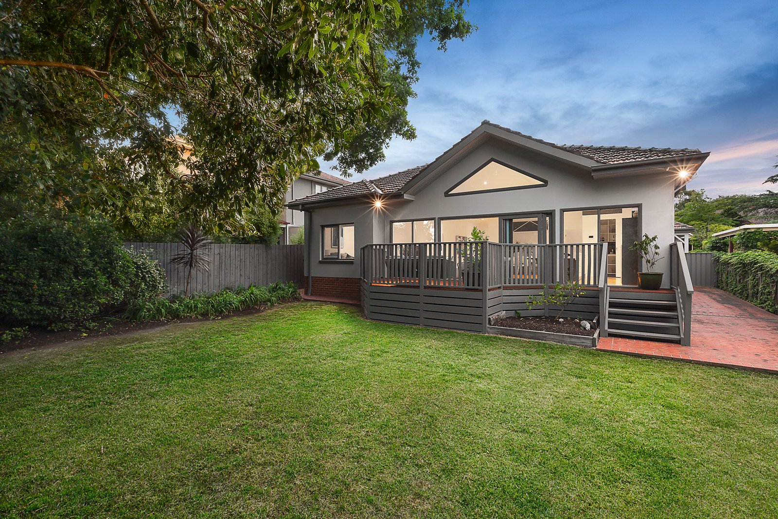 Behind its distinctive Art Deco exterior, this captivating single level residence combines wonderful original features with superb contemporary style. Bathed in natural light and brilliantly zoned for modern family lifestyles, it enjoys close proximity to popular cafes, Leo's Supermarket, Burwood station, trams, walking/cycling tracks, Ferndale Park, freeways, and pre-eminent schools. A central entrance hall with timber floors flows through to a refined sitting room boasting Deco detailing and a gas log fire and adjacent formal dining room. Vaulted ceilings add to the scale of the generous living and dining room with endless northern light, stunning fully appointed gourmet kitchen with stone benches, European appliances, integrated fridge/freezer and a butler's pantry. Double-glazed glass sliding doors reveal a large entertaining deck overlooking the deep private leafy north-facing garden. Superbly zoned family accommodation comprises the gorgeous main bedroom with en- suite and built in robe and a home office or 4th bedroom, while in a separate wing there are two additional bedrooms with robes, second bathroom and separate laundry. Ready to just move in and enjoy life in this prized location with multiple green parks/tracks at your doorstep, it includes an alarm, cctv, video intercom, shed, auto gate and carport. Land size 711sqm approx.