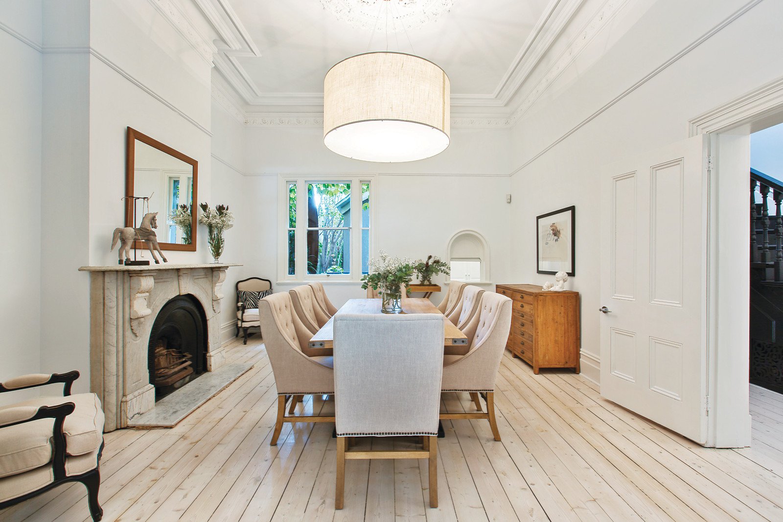 Displaying wonderful designer flair, limed Baltic pine floors provide a fabulous contrast to the soaring ornate ceilings in the arched entrance hall, gracious sitting room and beautiful formal dining room, both featuring marble open fireplaces. The captivating main bedroom with full width balcony, marble open fireplace and stunning en-suite is complemented by three additional double bedrooms with built in robes, a stylish bathroom and a study or 5th bedroom on the floor above. The gourmet kitchen featuring marble benches and Gaggenau and Bosch appliances and a light-filled living and dining room open to the spectacular private landscaped garden oasis with BBQ and picturesque mosaic tiled heated pool. Beyond the garden and accessed from Canterbury Place, a double garage with 2 car-stackers, providing excellent parking for 4 cars. Above is a generous studio/6th bedroom with kitchenette and chic bathroom.
