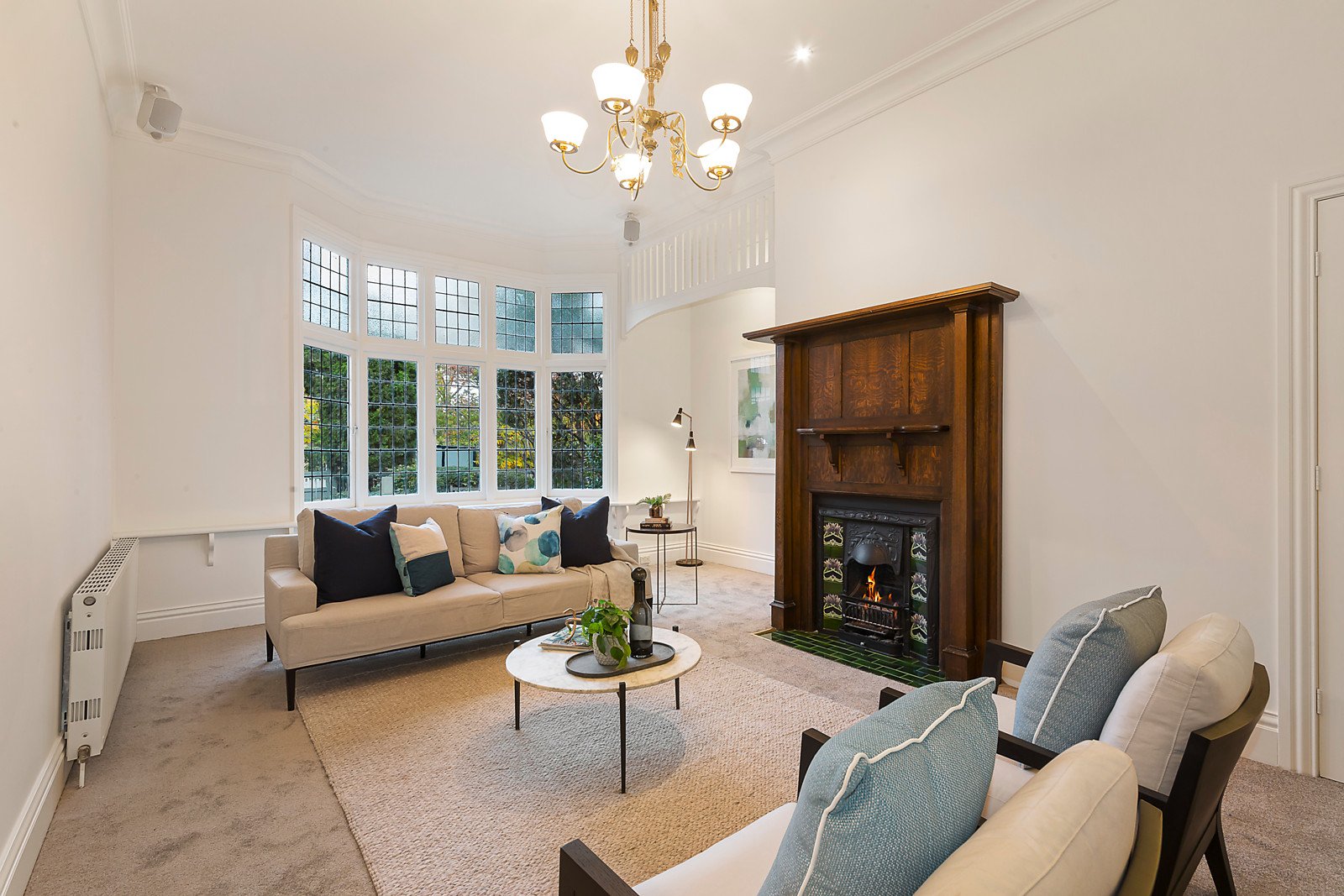 Irresistible period charm is displayed through a welcoming central hallway featuring Baltic pine floors, a refined sitting room with open fire, formal dining room warmed by a gas fireplace and a spacious living room with open fire and French doors opening to the garden. The beautiful main bedroom with open fire, built in robe and stylish en suite and a fitted study are downstairs while a sensational children's zone upstairs comprises three double bedrooms with robes, a retreat or 5th bedroom and bright family bathroom. Hydronic heating throughout and ducted air conditioning upstairs zoned into downstairs.