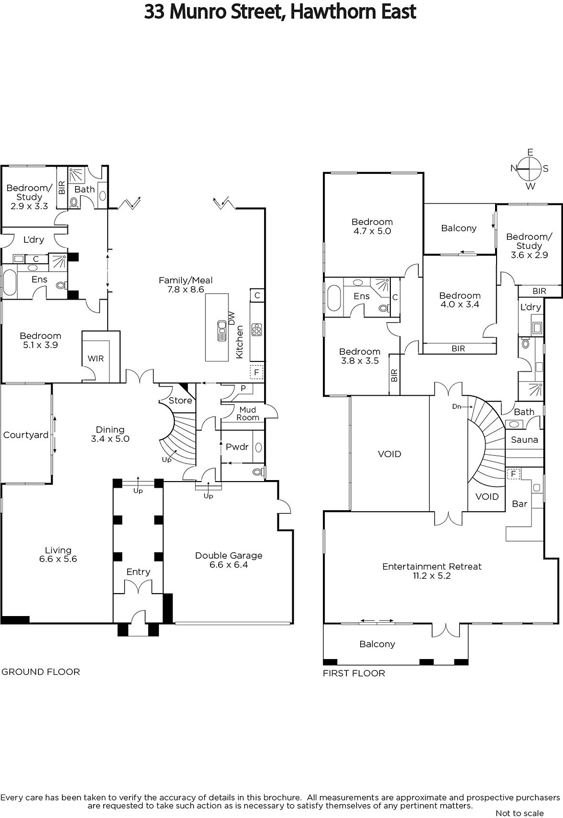 This light filled expanse of architecturally designed and thoughtfully planned family accommodation delights with its generous proportions and elegant grandeur. A bright and inviting entrance hall introduces an alluring sitting room adjoining an elegant formal dining room beneath a dramatic double height void and opening onto a private courtyard oasis. A separate expansive family living and dining area incorporating a gourmet European kitchen with stone benches opens through bi-fold doors to a private northeast aspect with large paved entertaining terrace and landscaped rear garden. An abundance of superbly proportioned family accommodation includes downstairs main bedroom with stylish en-suite and walk in robe, a second bedroom with built in robe and bathroom and upstairs, a second main bedroom with en-suite and built in robe, two additional bedrooms, (opening to a lovely private balcony), study and 4th bathroom with sauna. Well suited for growing or teenage families, the huge upstairs entertainment retreat with fully equipped bar and wide west-facing balcony offering city views is well separated from family living and bedroom areas.