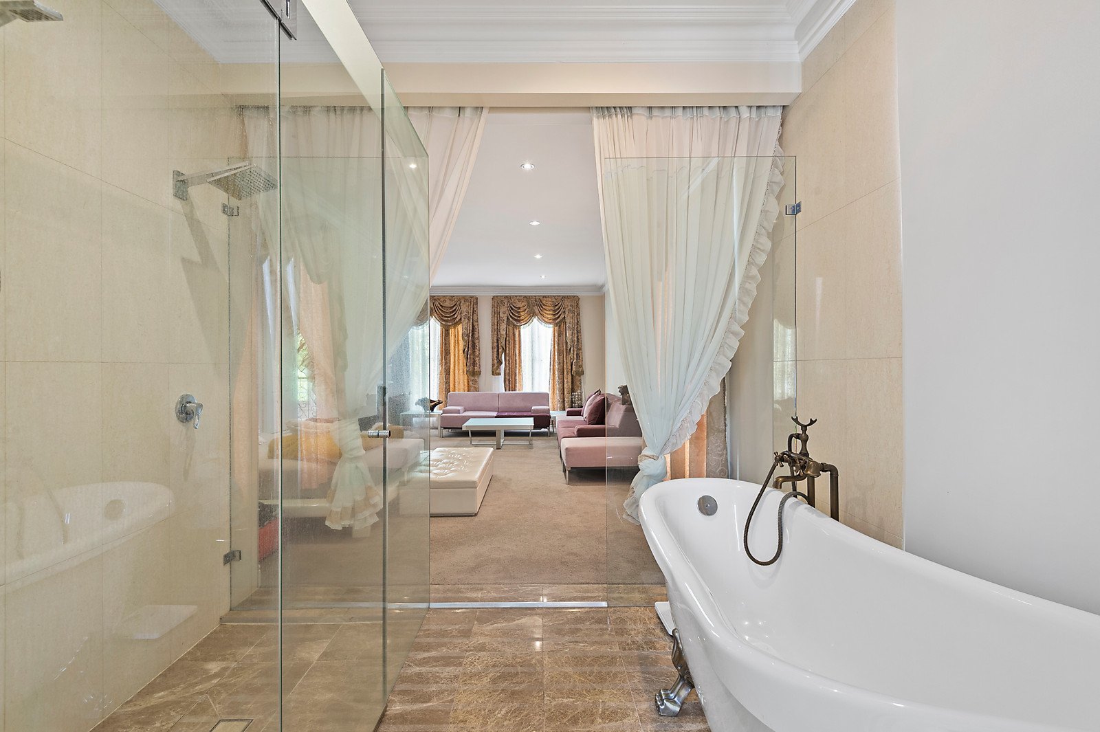 A downstairs bedroom with a walk-in robe and lavish ensuite is ideal for guests, while a graciously curved staircase leads up to the spectacular main bedroom with opulent ensuite and walk-in robe, two additional bedrooms with stylish ensuites and robes, and a spacious retreat.