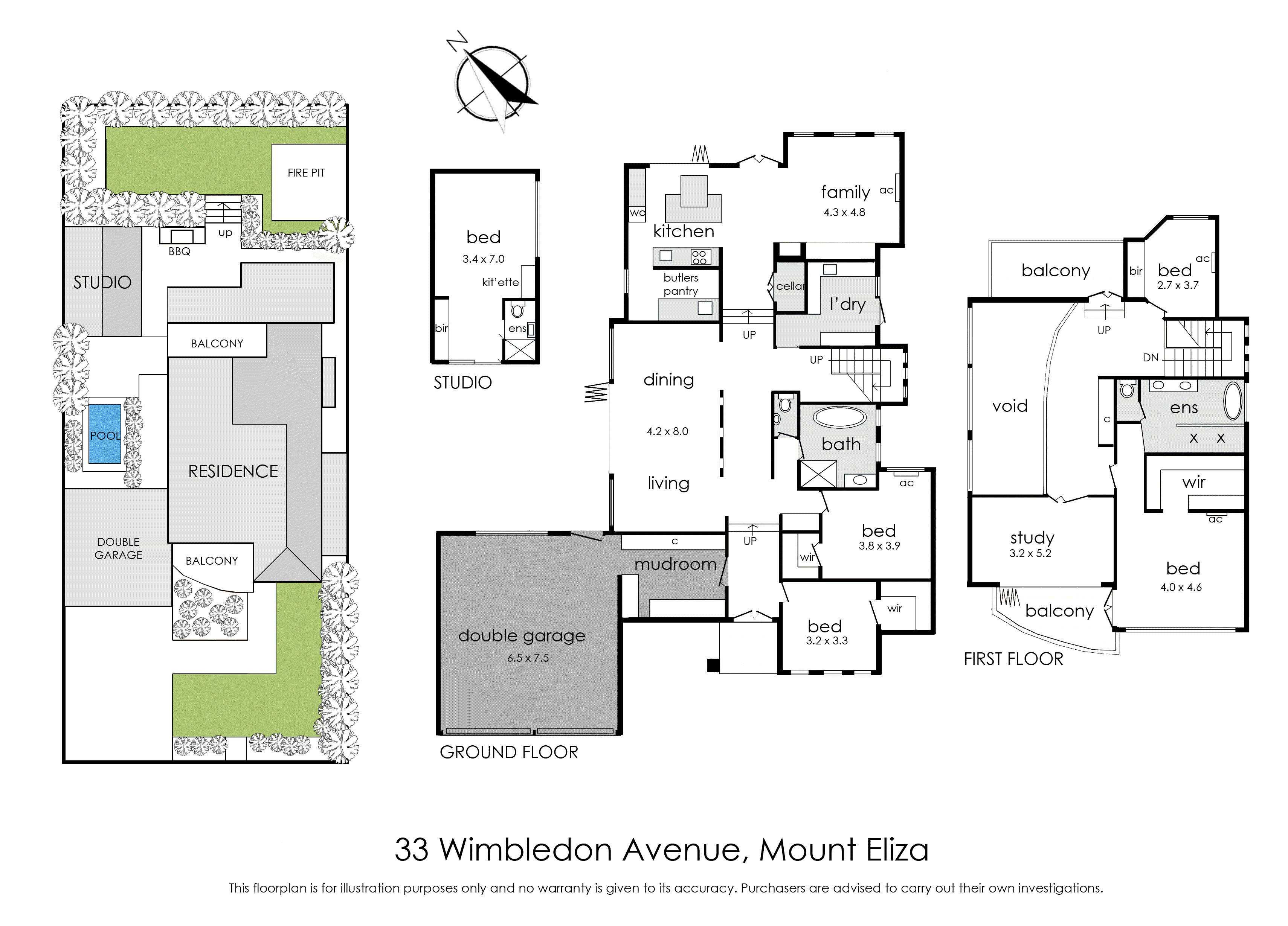 The large home office or parents retreat is blessed with its own viewing balcony harnessing the verdant vista to the front gardens and inspiring blue glimpses of the bay in the distance.