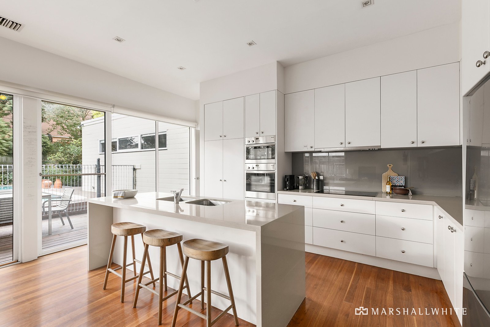 Tranquil privacy, light filled proportions, and an easy family-friendly flow define this beautifully presented single level home. Enter via a traditional undercover front verandah through double doors to a wide hallway that introduces the spacious and flexible floorplan. An exquisite in-ground pool and sun deck take prime position within the landscaped north facing gardens creating a compelling setting for everyday enjoyment and entertaining. A gorgeous west facing deck and pergola provide the backdrop to the formal dining room, connecting from the open plan family room, flanked by windows and doors opening to the garden. Three large bedrooms include the vast main with ensuite, while a spacious home office could serve as a retreat or fourth bedroom if desired. The kitchen is beautifully equipped with a central stone island, dual Miele ovens and a Bosch stove top and dishwasher, and additional attributes include air conditioning, a bright main bathroom, laundry, and large garage with plenty of off-street parking. Zoned for Lloyd Street Primary School, and Monash University within easy reach, a choice of reserves, Gardiners Creek, East Malvern, and Terminus Village shops are easily accessible creating an unmatched lifestyle opportunity. Land size: 651sqm approx.