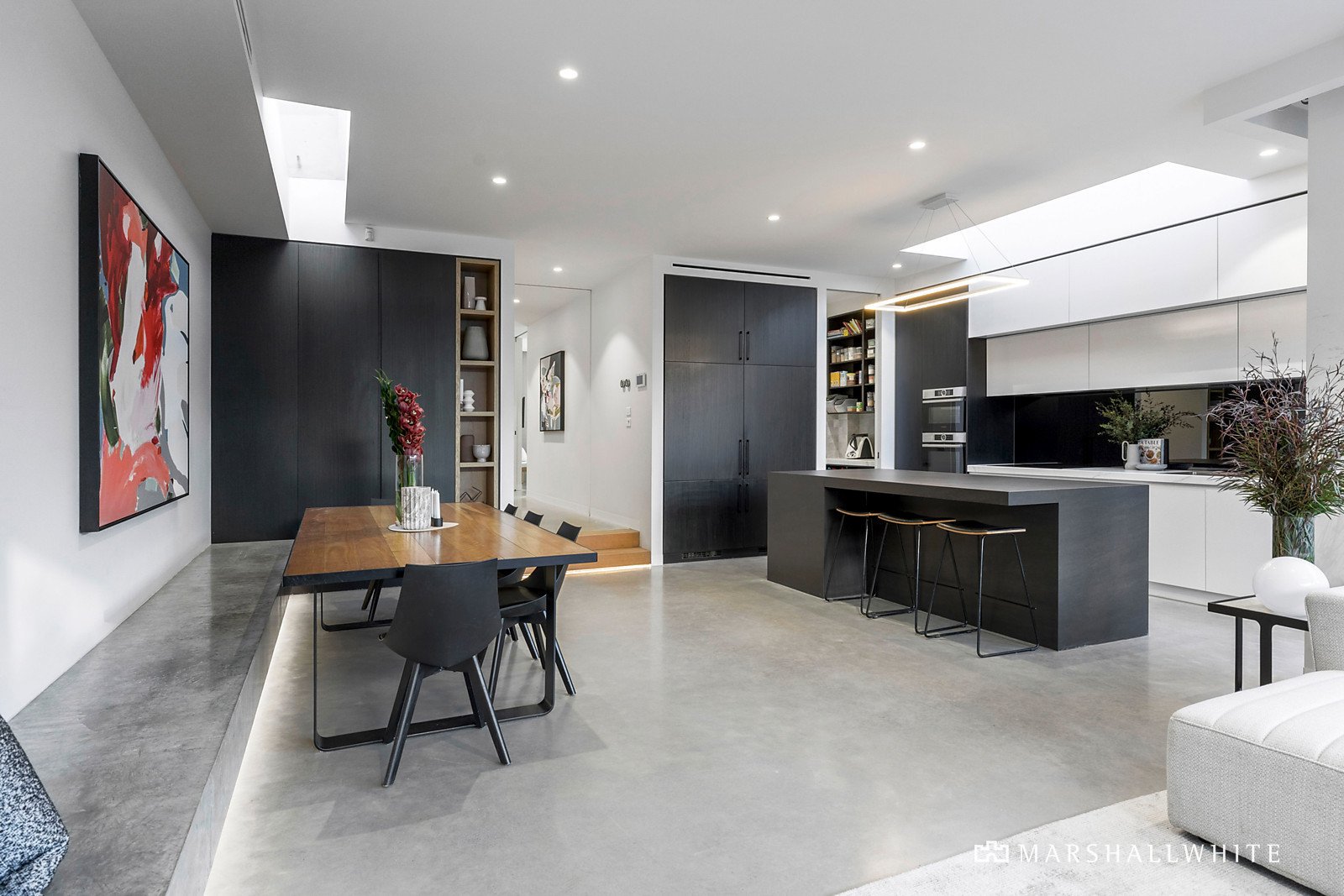 Greeted by polished concrete floors, high ceilings and clean lines, the timelessness of each detail is readily appreciated. Open-plan living and dining embraces the opportunity for family connection and entertaining, and the kitchen - beautiful and bold - is accentuated by Neolith porcelain slab benchtops, Bosch appliances, including an induction cooktop, and a Billi Zip HydroTap. Walls of glazing facilitate the seamless interaction with the alfresco, where the BBQ terrace and heated self-cleaning mineral pool and spa with Italian mosaics promise endless fun and a file of family memories. Upstairs, Blackbutt timber floors add warmth and texture to the area recognised as the children's domain. Three robed bedrooms, a central bathroom, and a powder room surround a relaxed retreat, and a private balcony boasts a trafficable skylight. The main bedroom suite is downstairs, creating the perfect haven for parents.